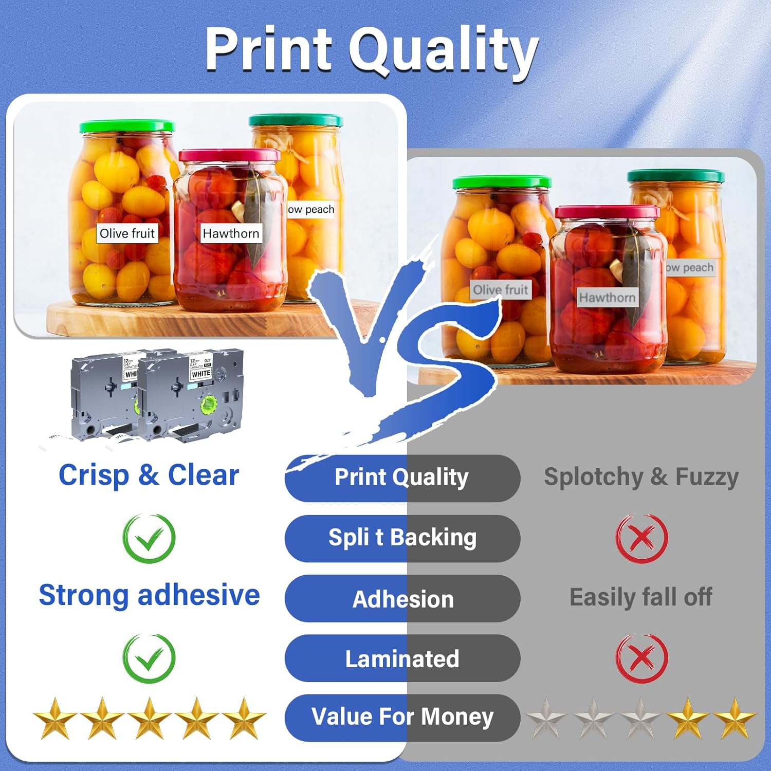 8Pack TZe-231 Tape Label Maker Compatible with Brother P-Touch TZe-231 Tape, TZE231 ½” 0.47”x 26.2 ft Laminated Black on White, for use with PT-D210, PT-H110, PT-D220, PT-D410, PT-D600