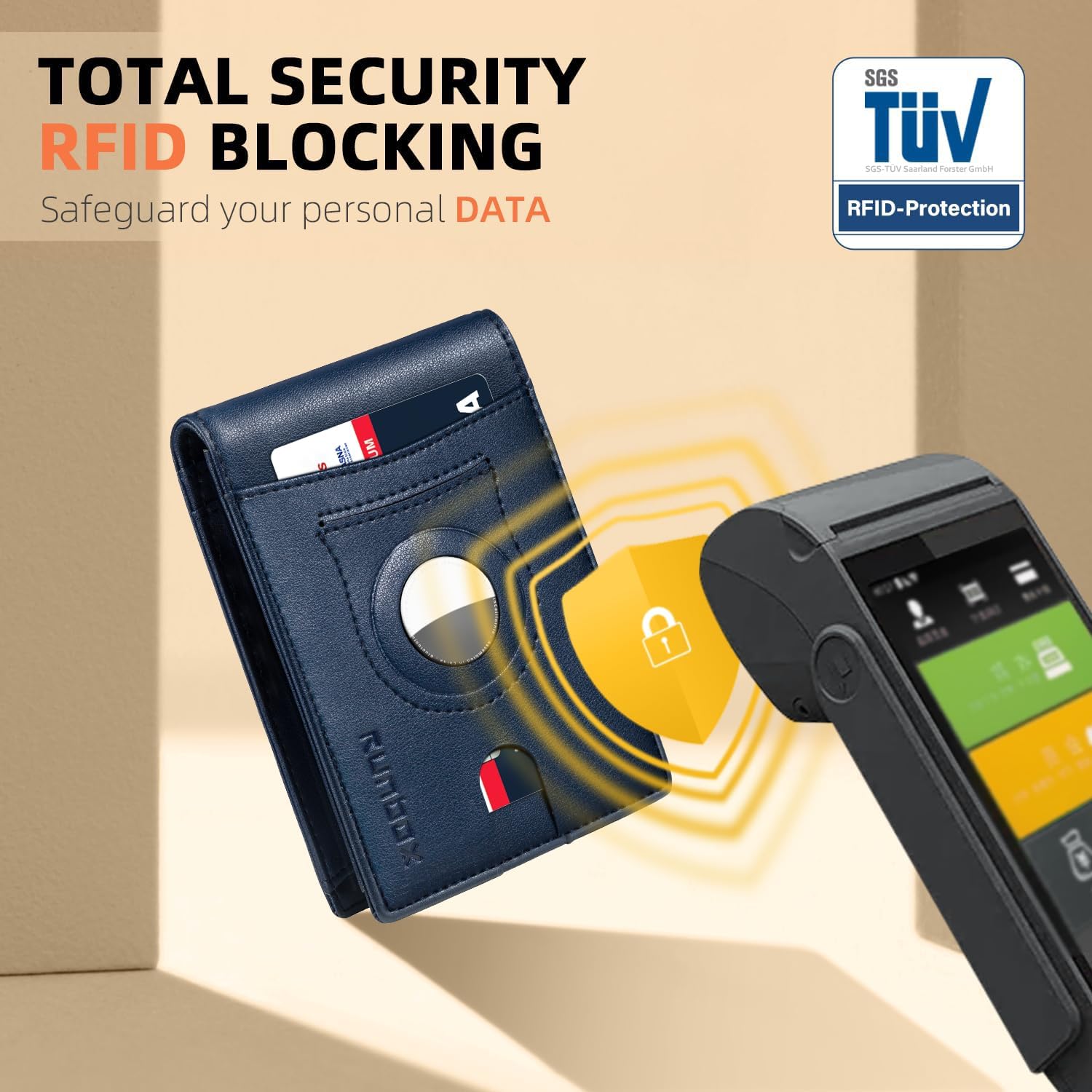 - RFID ANTI-THEFT FUNCTION - This wallet for AirTag boasts RFID blocking shield technology, safeguarding your personal and financial data against unauthorized scanning and identity theft. Enjoy peace of mind knowing that your information is safe and secure