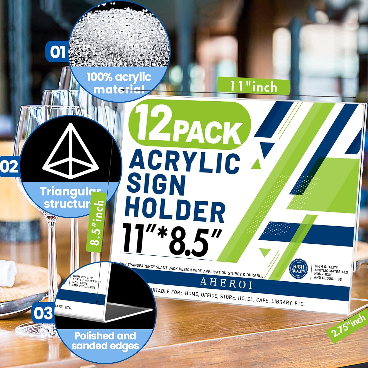 - Package Includes: You will get 12 pieces of 8.5″x11″horizontal clear sign holders, each acrylic holder is super clear, just covered with a thin protective film, so you need to peel off the film before use. (Easily peel off the film by gently hanging up the protective film around the edges with your fingernail)