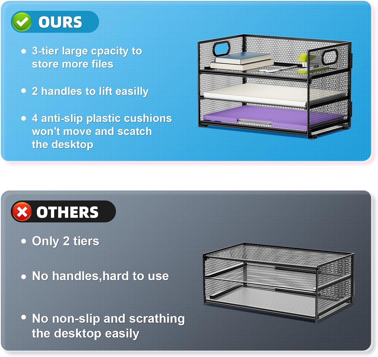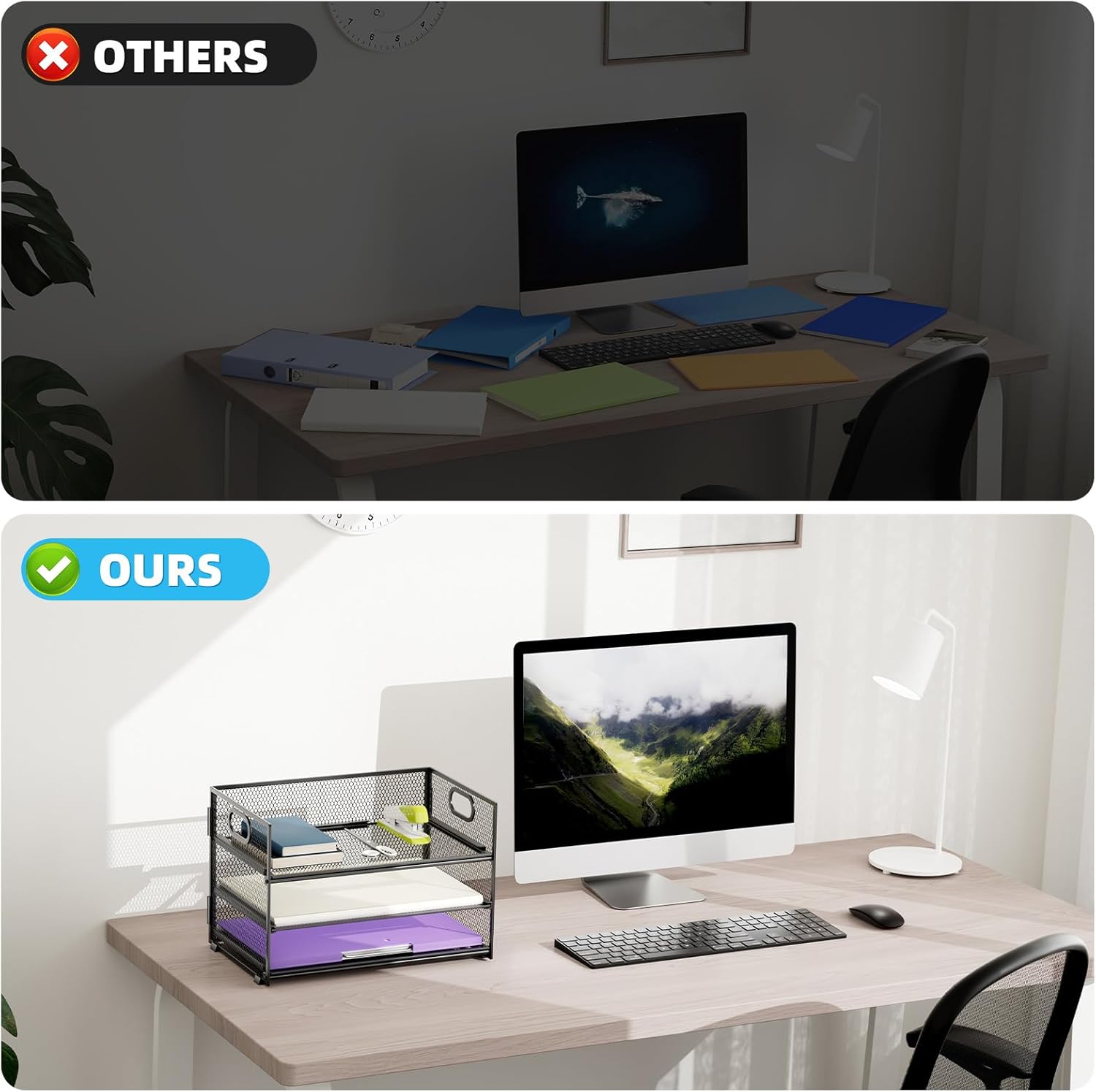 - 【PREMIUM QUALITY】The mesh desktop file organizer is made of lightweight durable metal mesh and reinforced with a solid steel frame that makes it have long-lasting strength and reliable performance.
