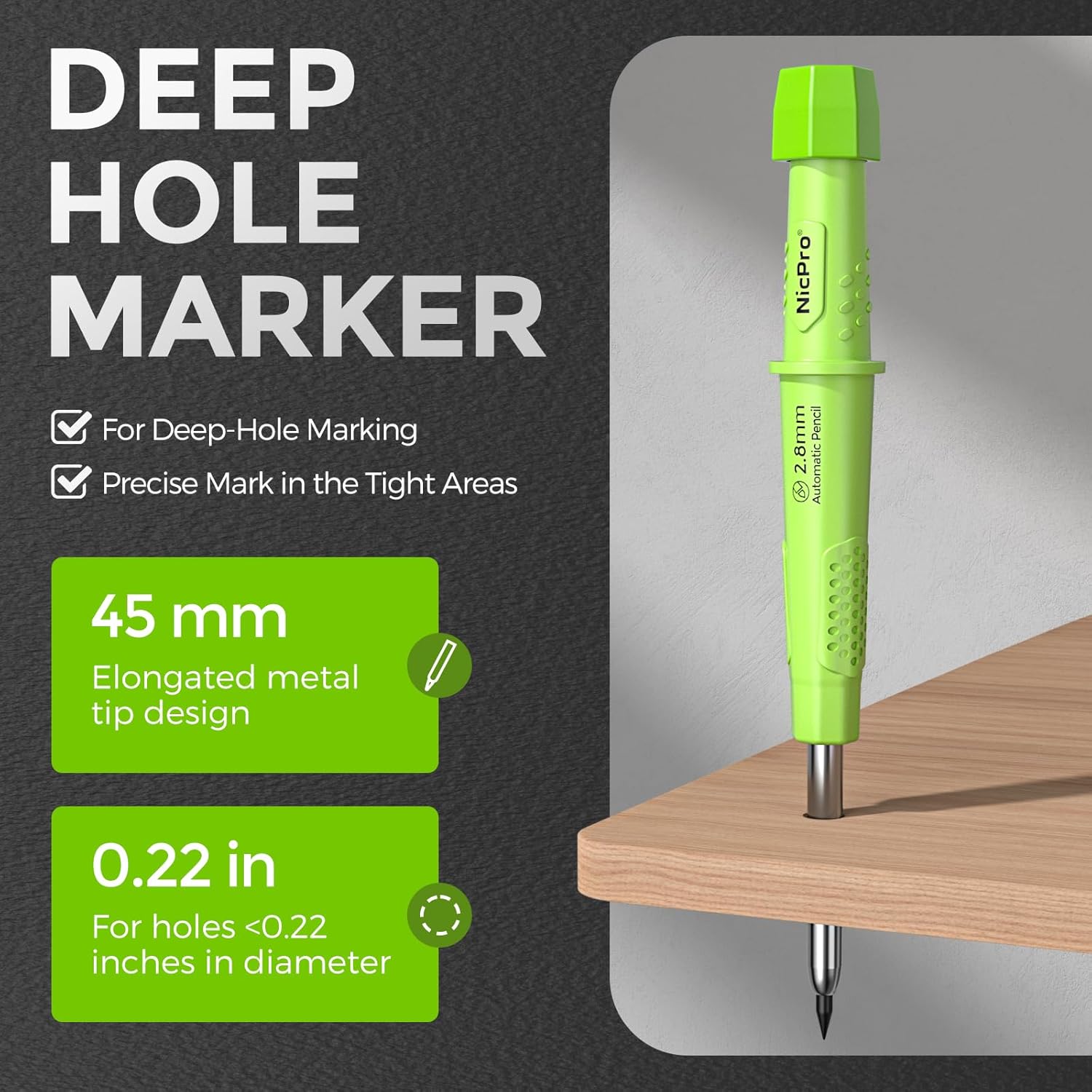 - Deep Hole Marker Pencil: The construction pencils designed with a 45mm elongated tip, which is more convenient to precise mark in deep or narrow holes and gaps that traditional pencils can't reach