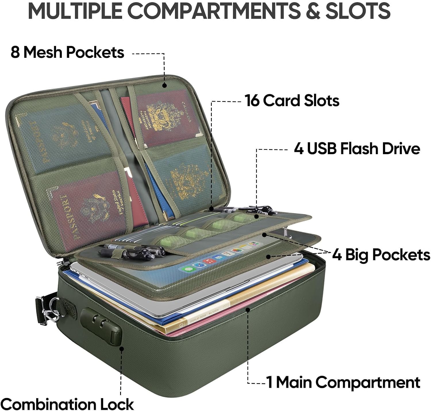 - Large Capacity: Available in three sizes, the large document box (16''x12.5''x11.5'') can hold legal-sized and letter-sized documents, the medium document box (12.5"x10.5"x6") is fit for letter size files, and it includes mesh pockets of various sizes; The smaller document bag (15''x11''x4'') features a three-layer design with 12 mesh compartments of different sizes