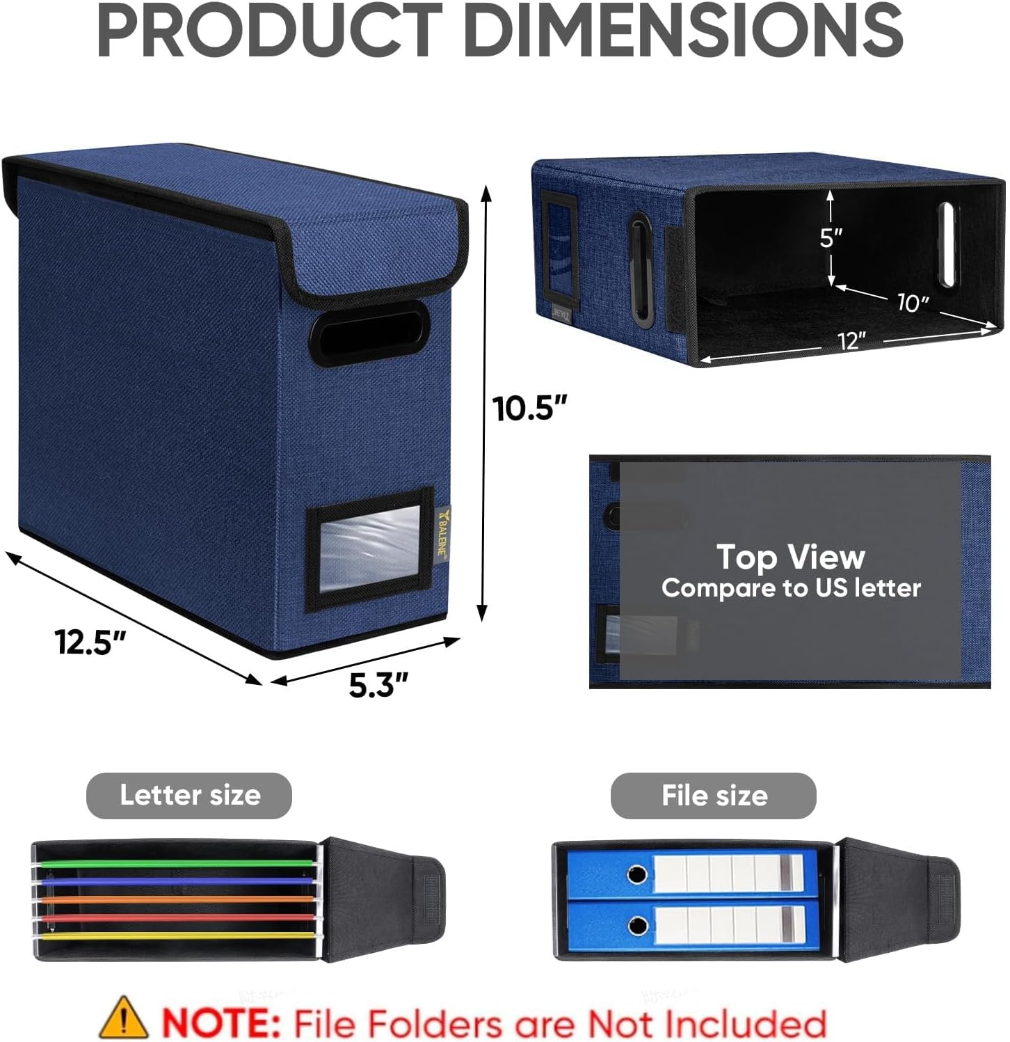 - [DURABLE MATERIAL] The outer layer of our filing box is crafted from high-quality polyester fabric and reinforced with thick cardboard in the middle. This construction ensures that the box maintains its shape and provides better bearing capacity for important documents and files. Its textured appearance can also serve as a stylish decorative element in any office or home