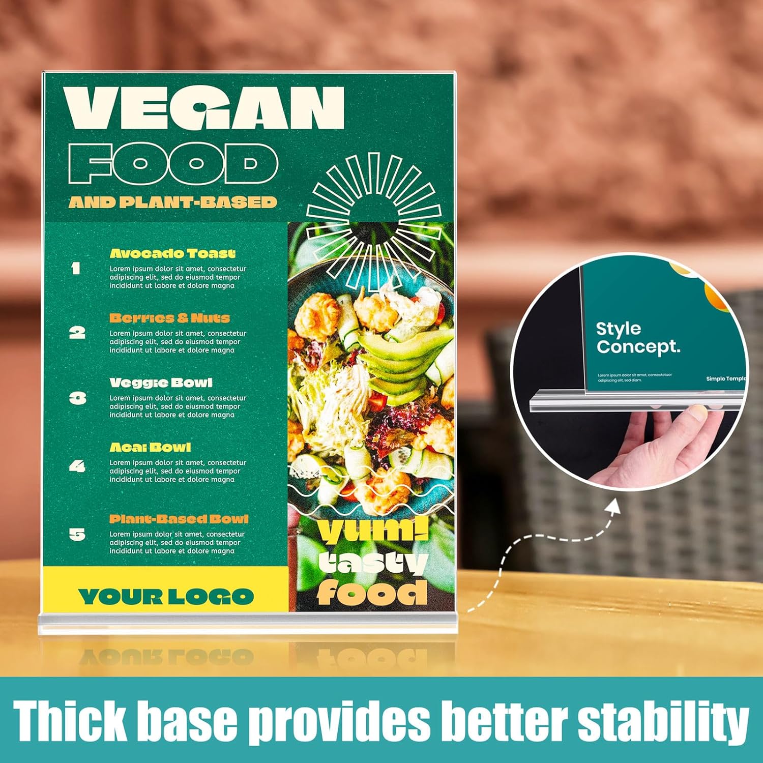 - Multifunctional Acrylic Stands for Display - 18-PACK 8.5x11 acrylic sign holder can meet your various daily needs. Not only can it be used to display menus and information promotion, but it can also be used as an acrylic picture frame to place your favorite photos.