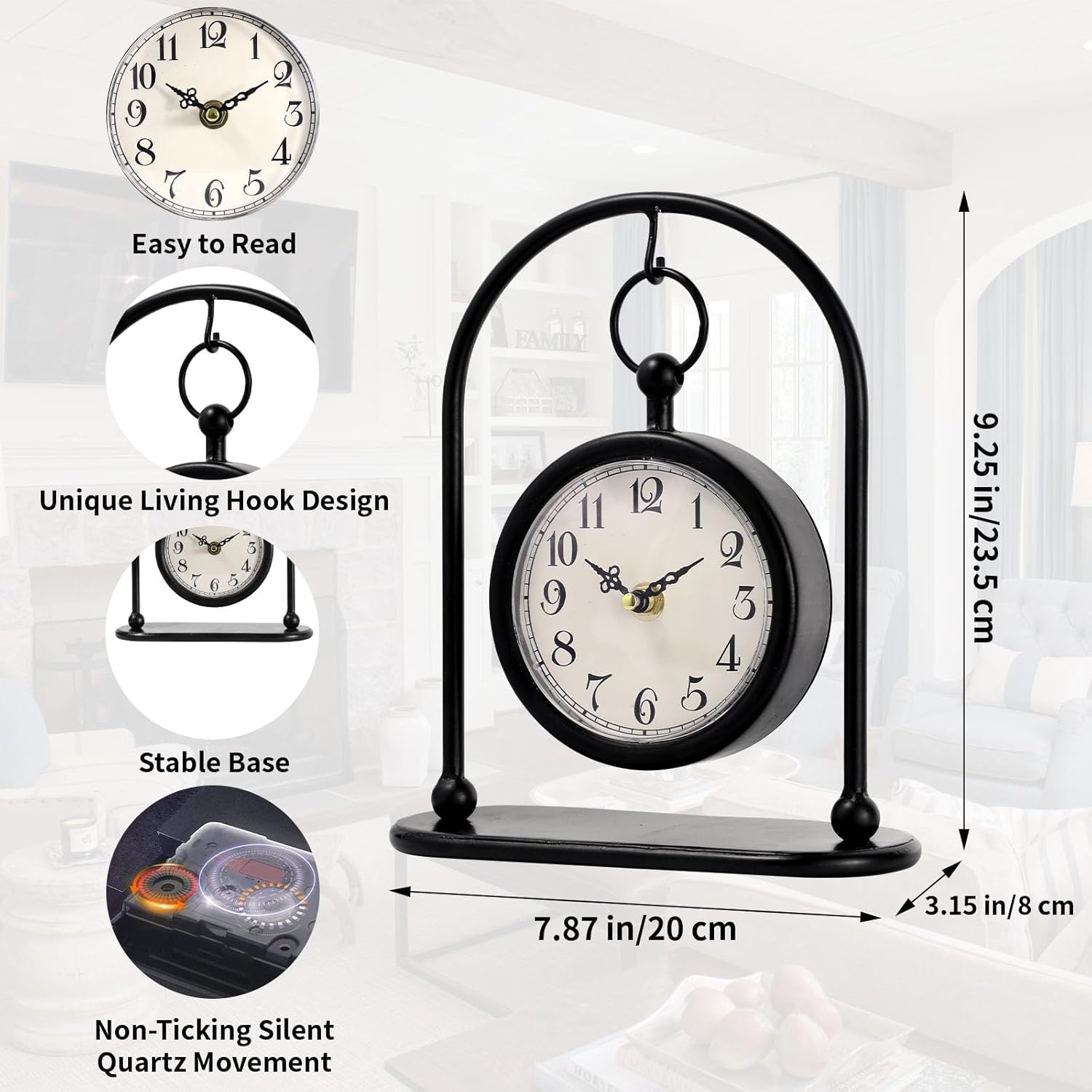 - High-Quality Desk Clock: This vintage clock is made of metal,features a hollow out back cover,painted in distressed black for a vintage look. This classic vintage table clock is a timeless piece that will be sure to add a touch of sophistication to any room