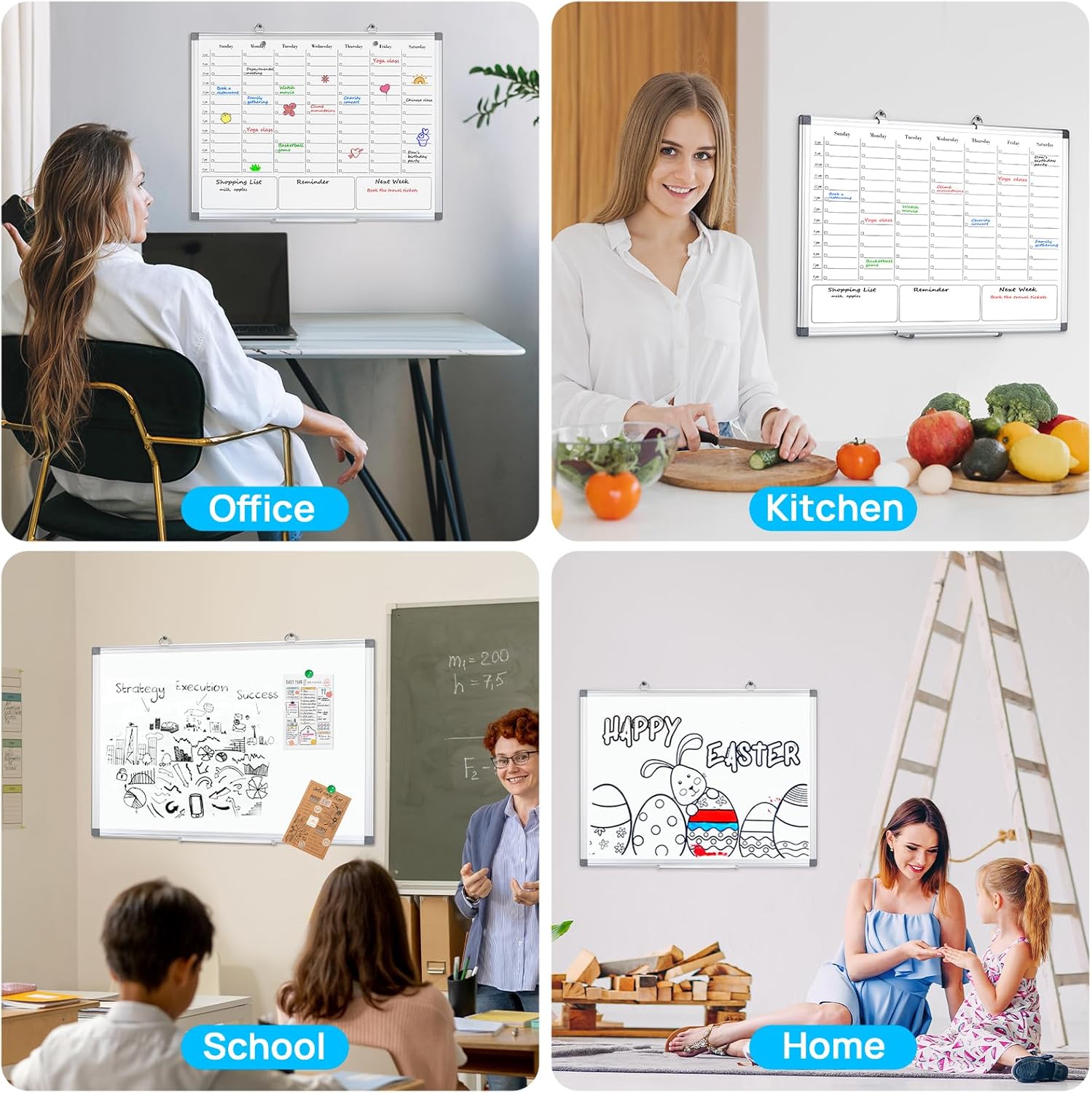 - 【Best Gift】If you are looking for a hangable magnetic dry erase board calendar, do not hesitate to try this one! This dry erase weekly calendar board for wall is functional and versatile, and can be used in home, office, school, classroom, small group instruction, kitchen and dormitory, etc. And if you are looking for a Christmas gift for your family, friends and students, it will be a very nice gift