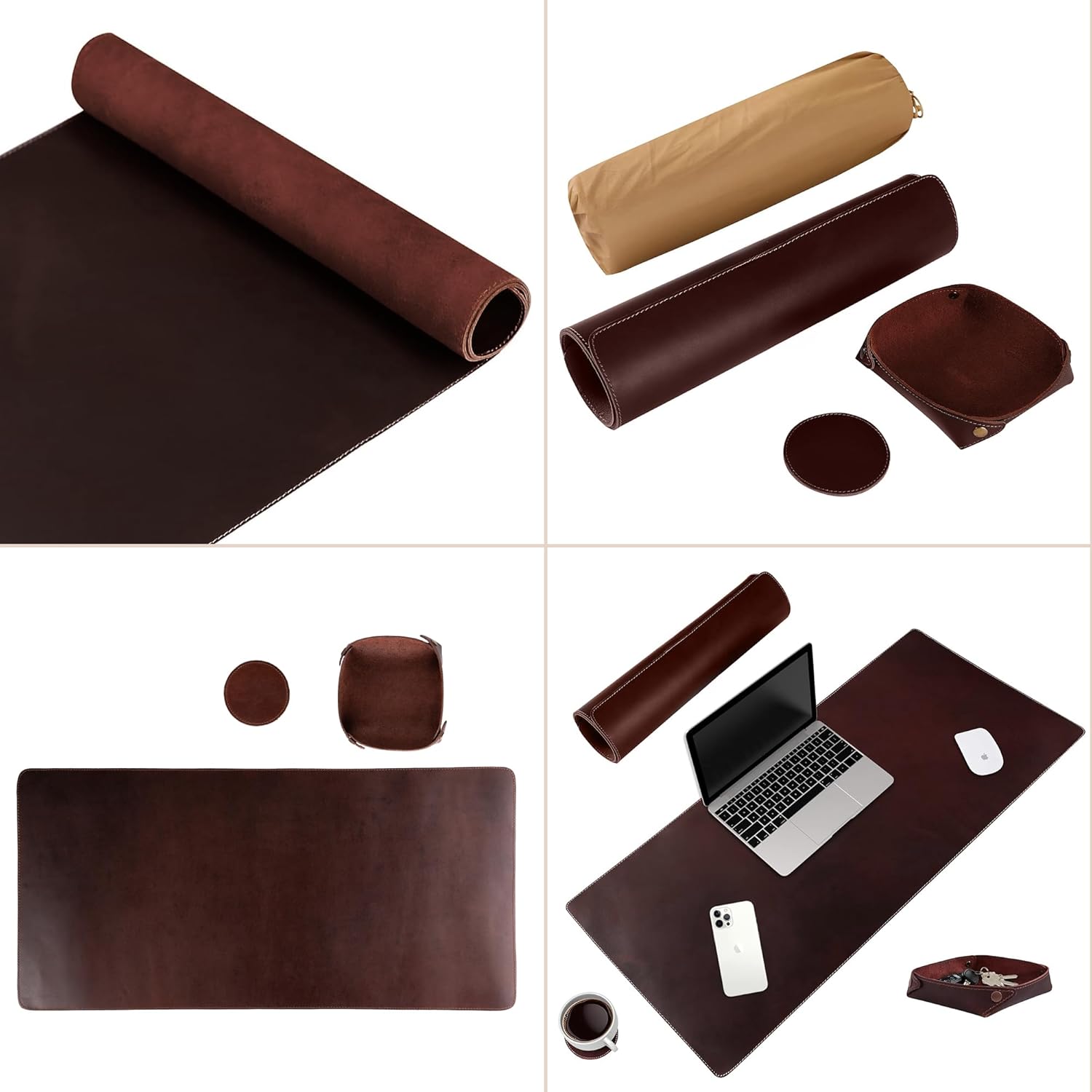 - LEATHER TRAY COASTER: Amazing desk blotter pad plus a beautiful leather tray and leather coaster set. Like our desk pad, the gaming mouse pad, mens valet tray and drink coaster are pure premium leather