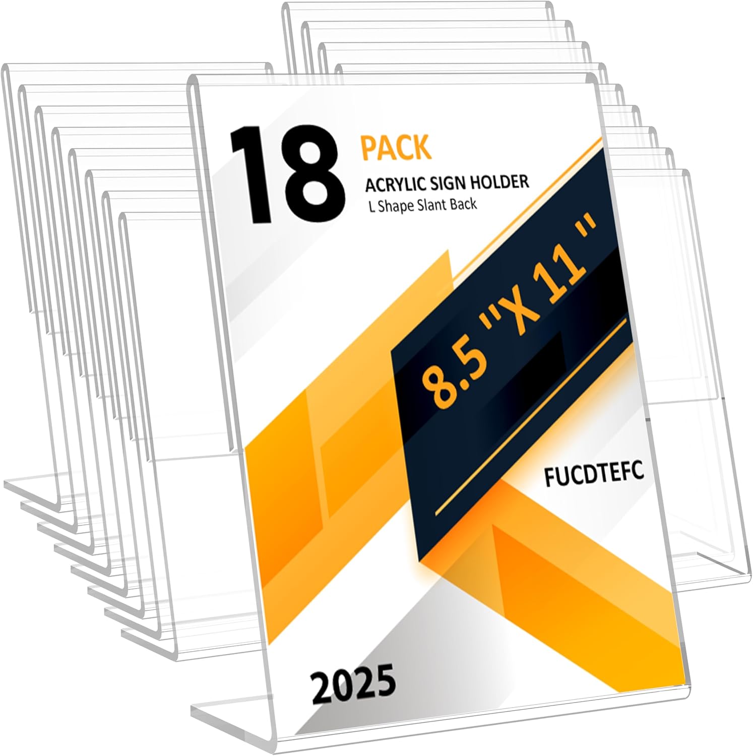 Acrylic Sign Holder 8.5x11 Inches 18 Pack, L Shape Clear Plastic Display Stand, Table Sign Holder Menu Flyer Paper Sign Holders 8.5x11 for Restaurants, School, Office, Store