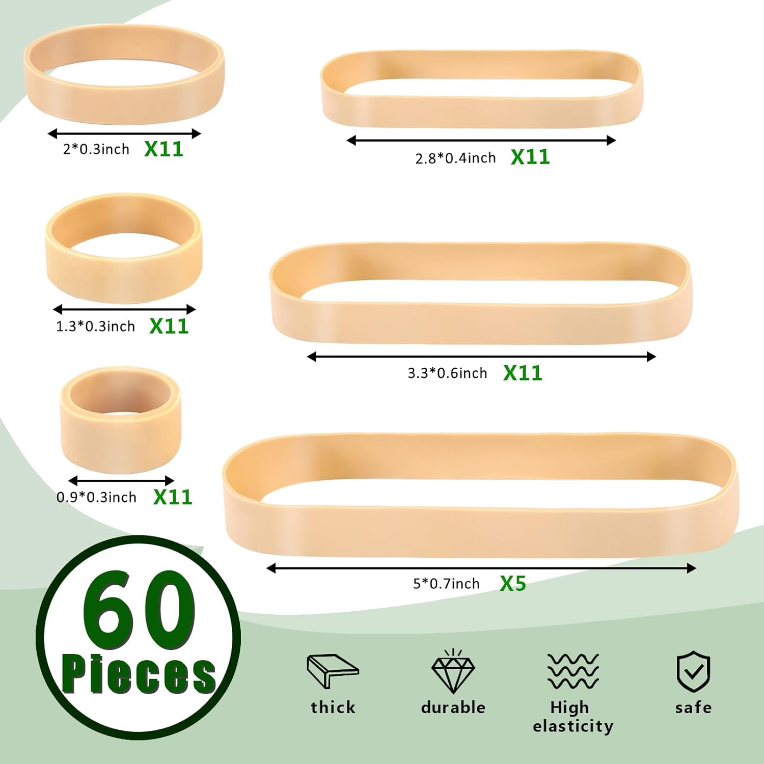 - The package includes:you will get 6 sizes and in all 60 pieces of thick rubber bands, sufficient quantity can meet your daily use and you can share with your close friends, family members