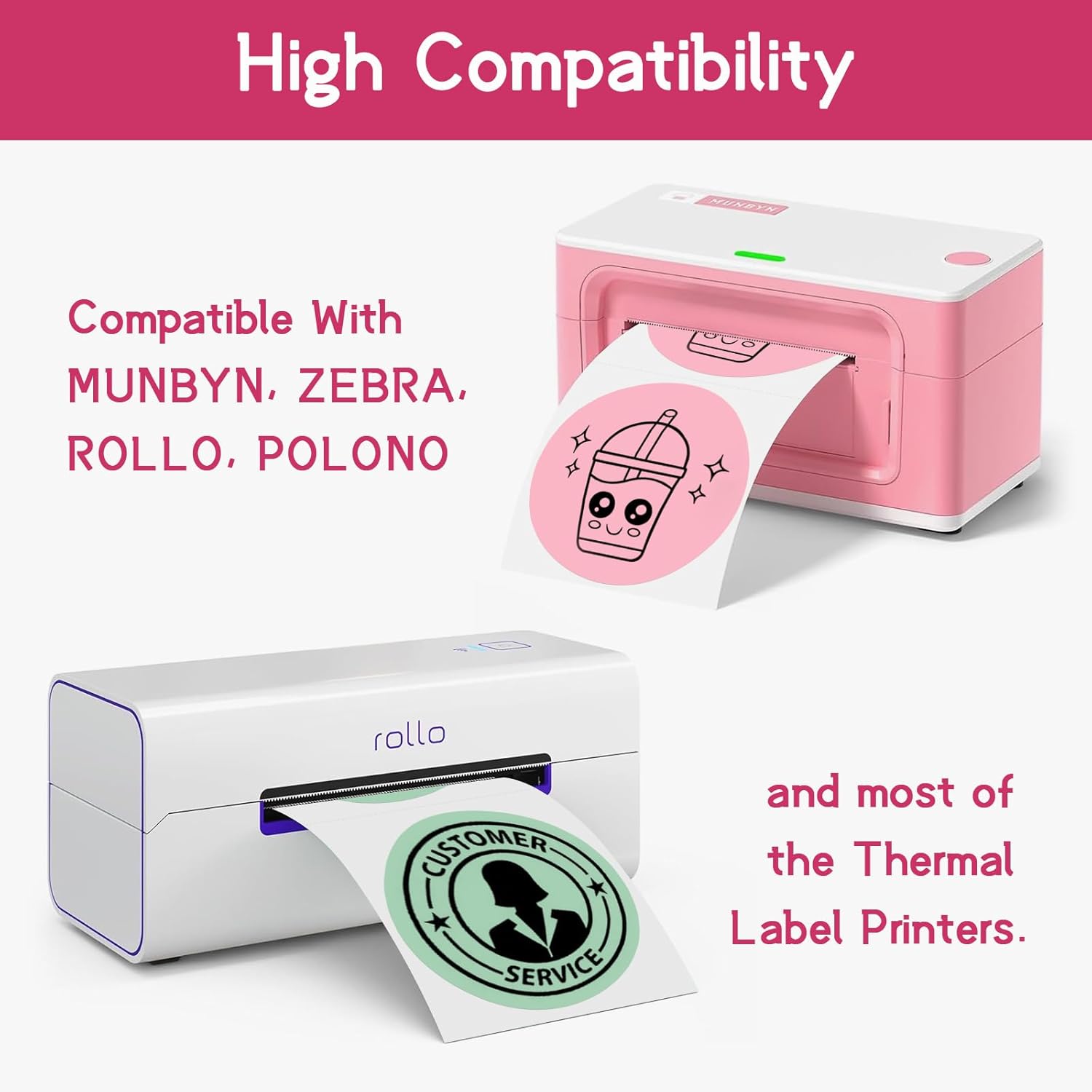 - COMPATIBILITY: Compatible for Zebra Desktop Printer LP2824, LP2844, TLP2824, TLP2844, ZD410, ZD420, ZD500, ZD620, ZP450, ZP500, ZP505, GK420T, GX420T, GX430T, GK420D, GC420D, GC420T, GX420D. Compatible with Rollo, MUNBYN, Eltron, Neatoscan, Intermec, Datamax, Printronix and most Desktop Thermal Printers.