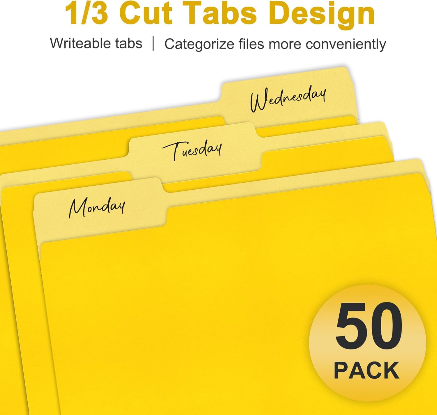 ViVin File Folder, 50 Pack Colored File Folders with 1/3-Cut Tabs, Fits 8.5 * 11 Letter Size Paper, Manilla Folders for Home Office School Documents(Yellow)