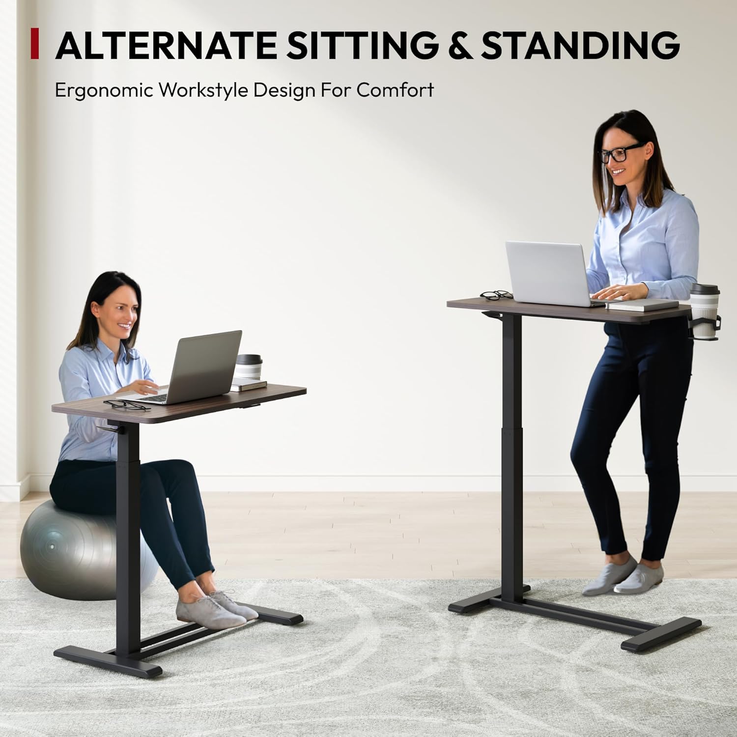 SANODESK Mobile Standing Desk with Hidden Wheels,Pneumatic Laptop Desk Rolling Computer Cart Movable Height Adjustable Small Sit Stand Desk for Home Office(27.6" W x 15.7" D, Maple)