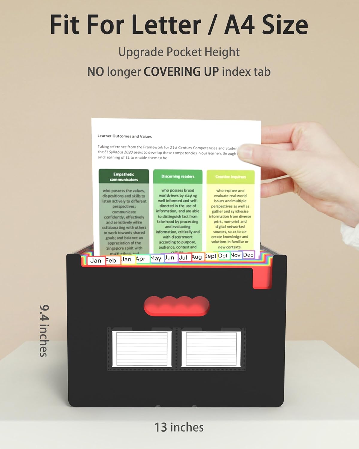 - 【Quick Access & Easy to Categorize】: Bright, color inner pages and Jan - Dec tab, just take a glance and locate. The tabs is clear and easy to read, not obscured by files.Use 2 additional front pockets for business cards, project title cards or notes.