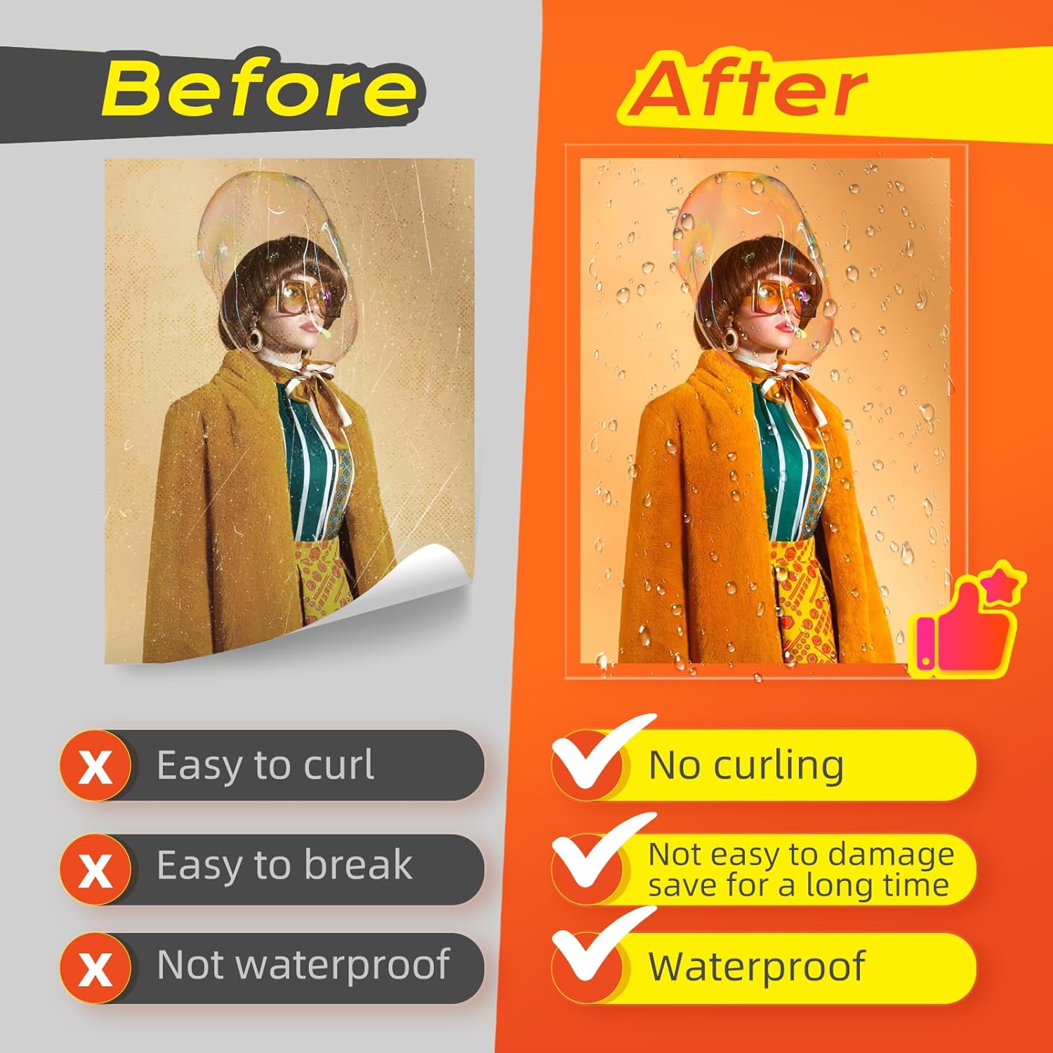 - WIDE APPLICATION: It is perfect for protecting your photos, certificates, cards, recipes, stickers, stencils,planner decorations, to-do lists, recipe cards, and schedulers,collected news and magazine ,and more because our self-adhesive laminated paper is waterproof, transparent, sticky, and wipeable. In addition, you can also be creative and use it to make handicrafts such as dried flowers and specimens or paste the clear laminating sheets in the kitchen, window, and other places that are not easy to clean. Don't limit your imagination, and just create