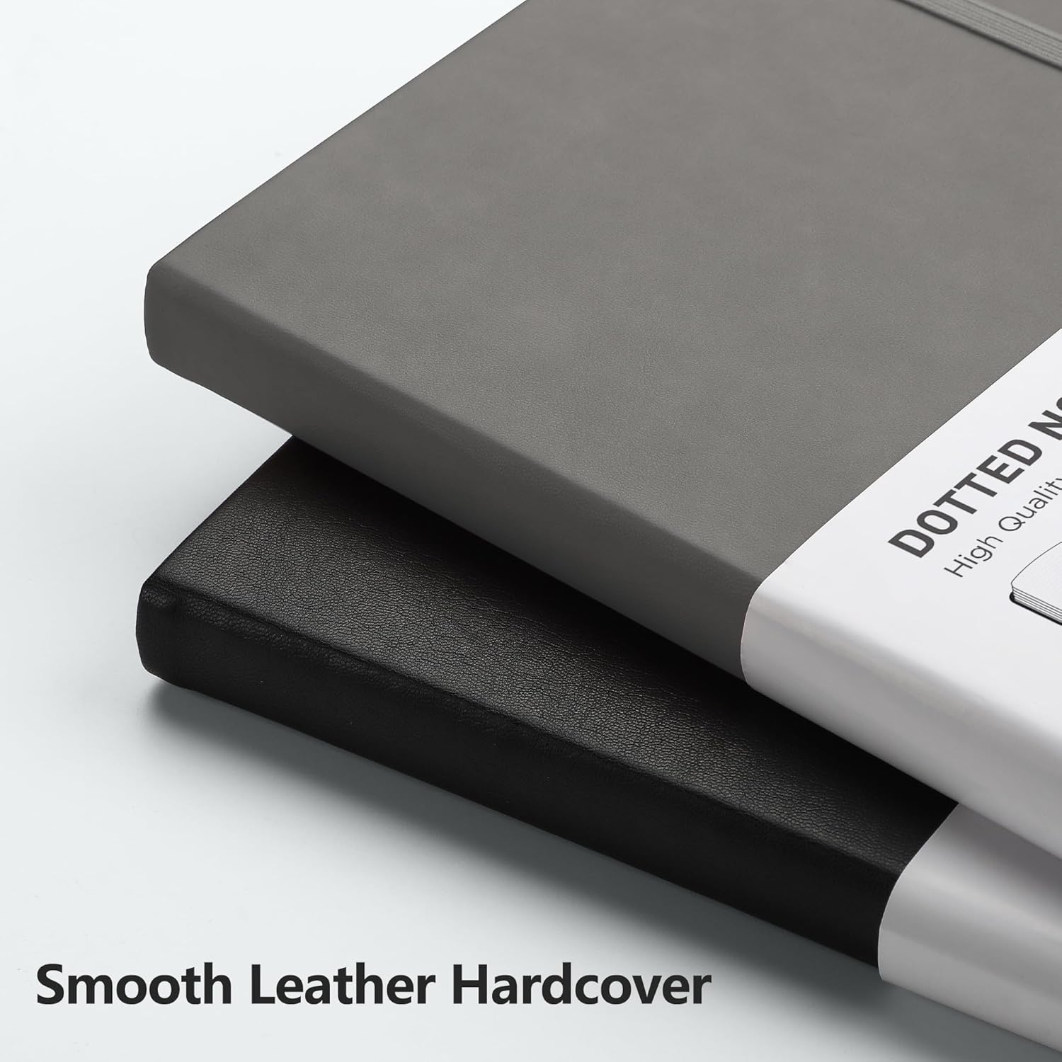 - PREMIUM PAPER: Crafted with time-resistant 100 GSM paper, this dotted journal preserves thoughts flawlessly while resisting ghosting/bleed-through with most pens. Acid-free material ensures long-term preservation, and its smooth surface enhances writing clarity - blending durability and premium performance
