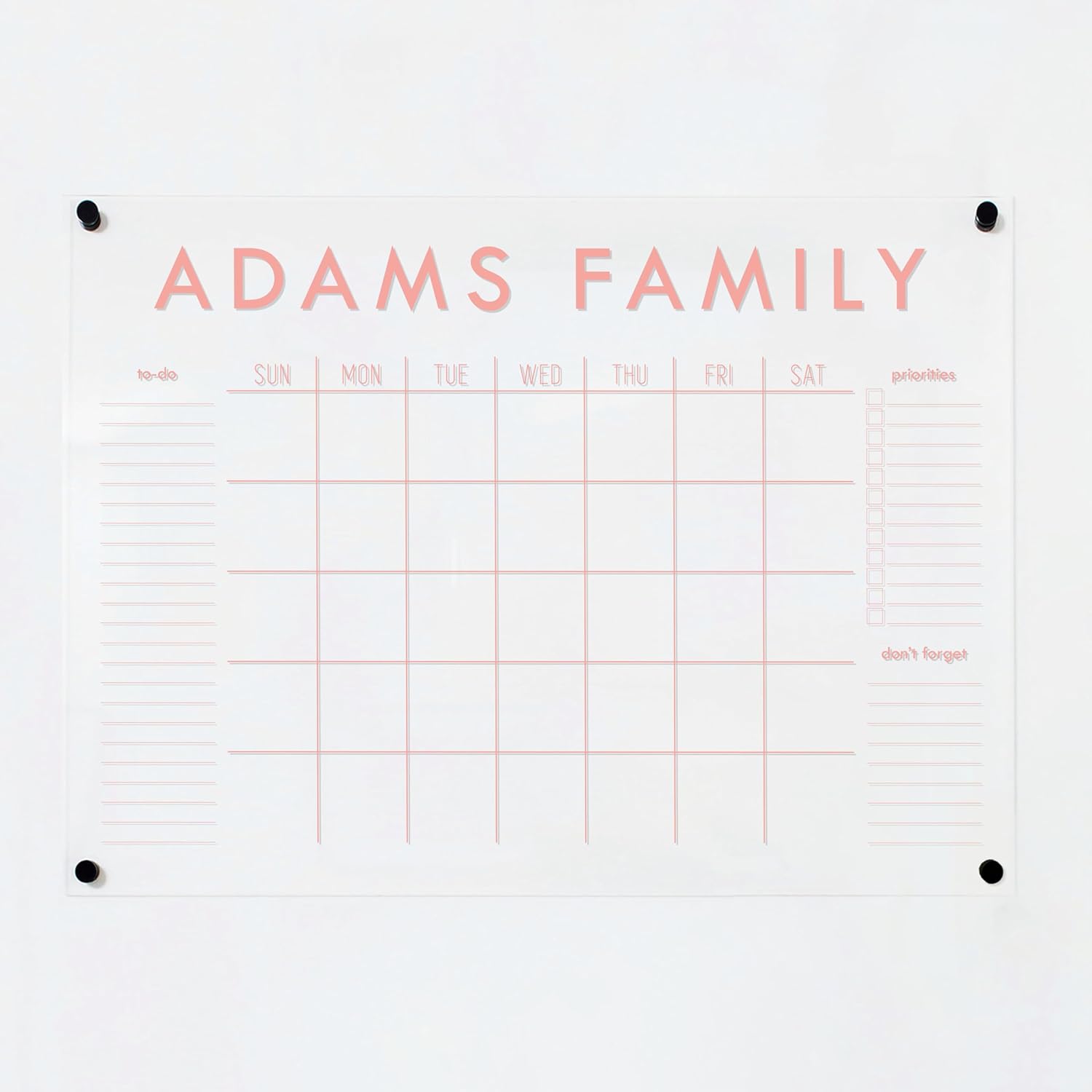 Personalized Clear Acrylic Calendar for Wall, Calendar Whiteboard for Wall, Dry Erase Wall Calendar, Wall Calendar Organizer System for Home (Block, Blush, 31"W x 23"H)