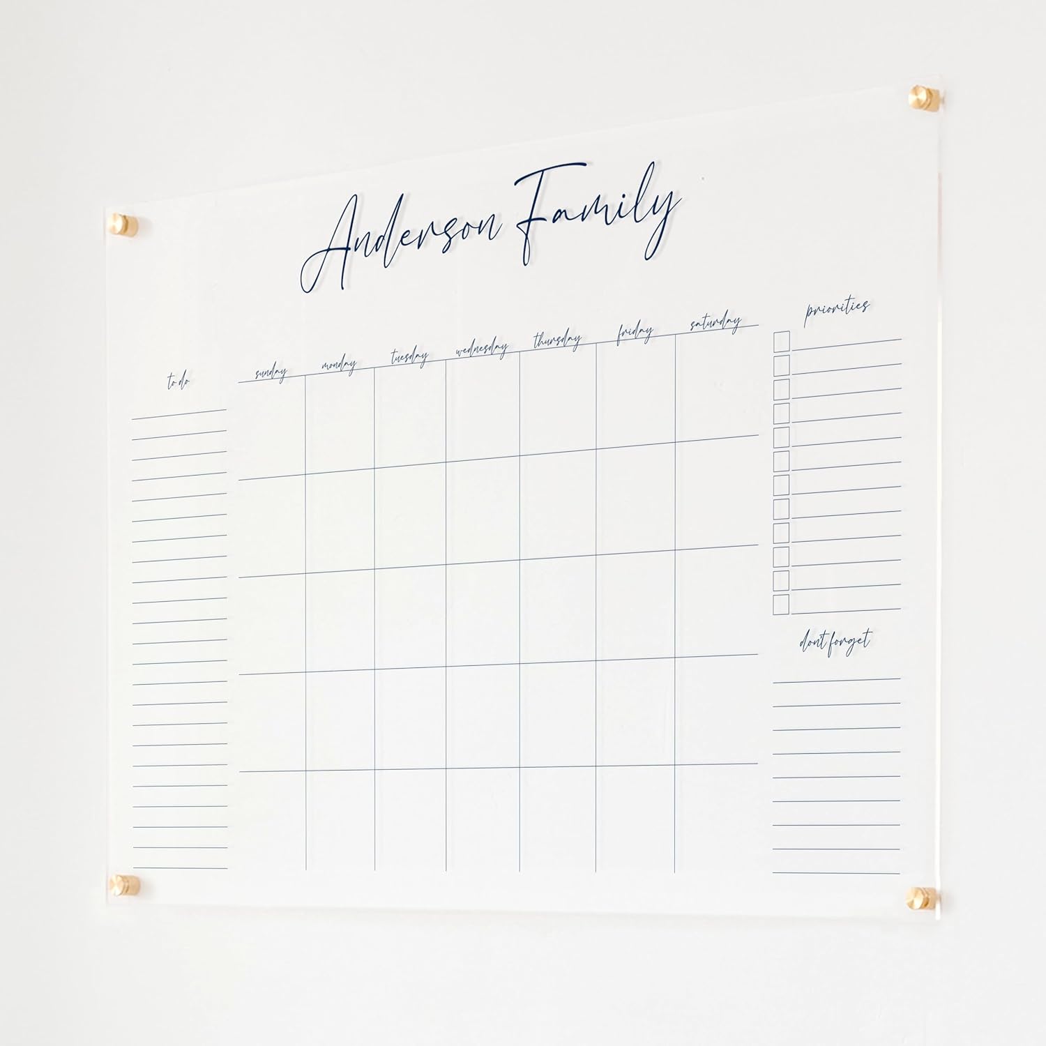 Personalized Clear Acrylic Calendar for Wall, Calendar Whiteboard for Wall, Dry Erase Wall Calendar, Wall Calendar Organizer System for Home (Cursive, Navy, 38"W x 26"H)