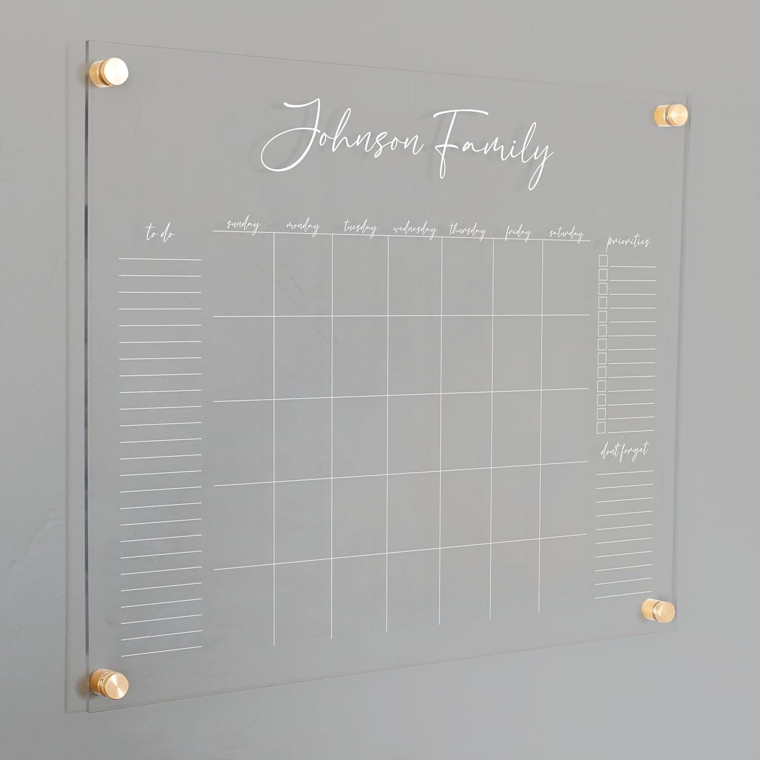 Personalized Clear Acrylic Calendar for Wall, Calendar Whiteboard for Wall, Dry Erase Wall Calendar, Wall Calendar Organizer System for Home (Cursive, White, 23"W x18.5"H)
