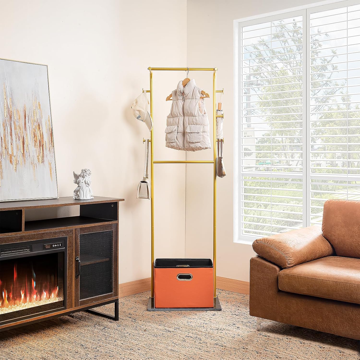 Heavy Duty Coat Rack with Storage Basket Metal Hanging Clothes Rack with Marble Base Modern Standing Clothing Rack for Entryway Bedroom Living Room Hotel 19.69 x 13.39 x 67.72 Inches (Gold)