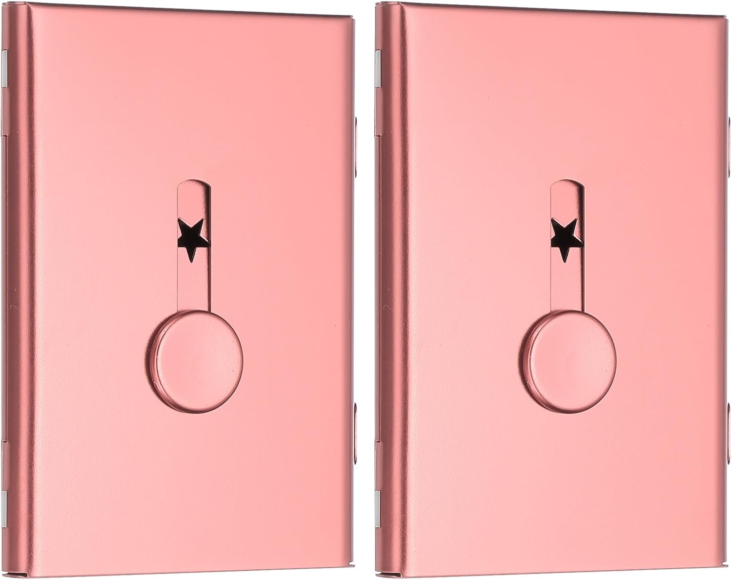 PATIKIL 2 Pcs Business Card Holder, Thumb Drive Business Card Holder Portable Business Card Holders Alloy Slide Out Card Case for Business Meeting, Rose Gold