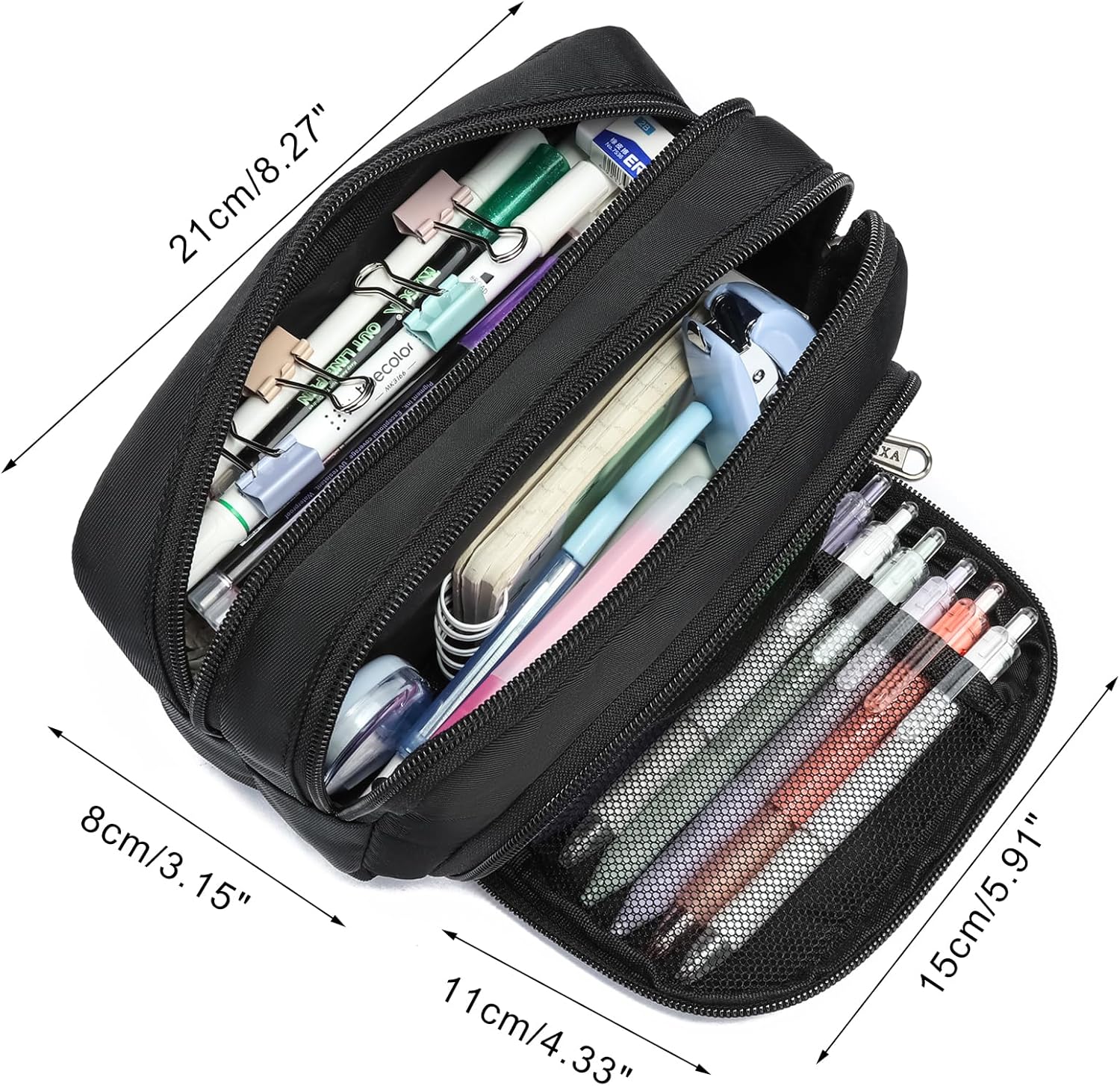 XQXA Pencil Pouch Large Capacity Pencil Case Organizer, Multifunctional Pen bag with 3 Compartmens, Big Pencil Bag for Office Travel Men Women Adult (01-Black)