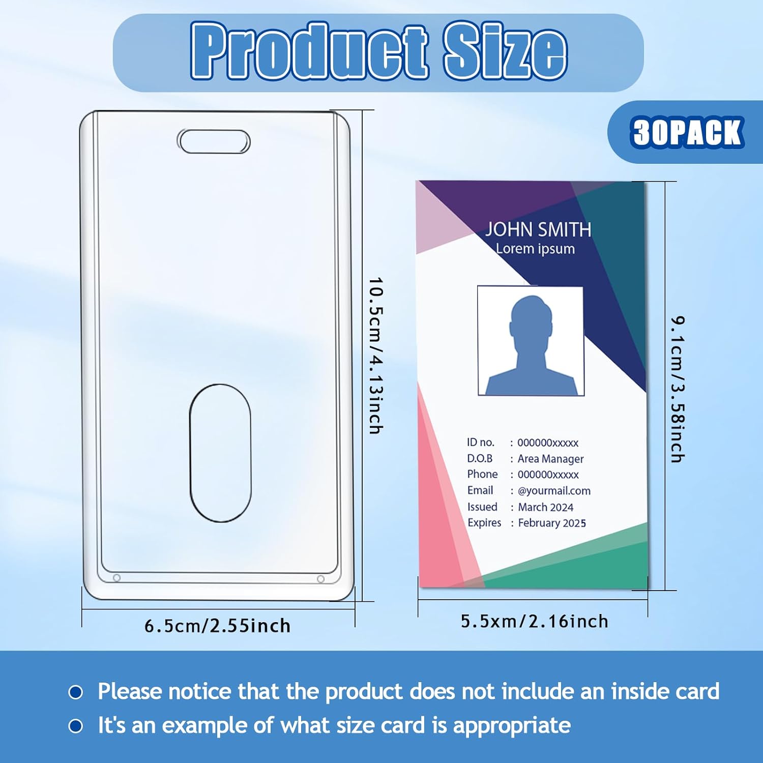 30 PCS Acrylic Card Holders, Clear ID Card Holders, Hard Plastic Badge Holder, Vertical Card Protector, Cover Transparent Badge Protector for Office Classroom Fair