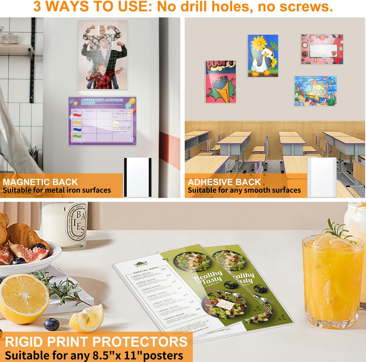 - Versatile Display Options: These plastic sign holders with magnetic strips and adhesive strips, it can be firmly attached to magnetic surfaces or stuck on walls