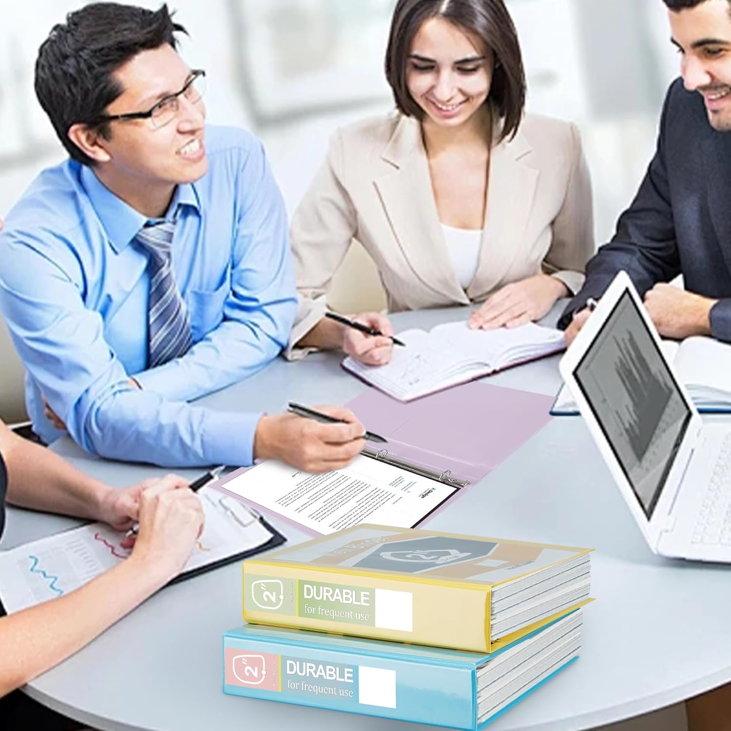 Zzrywuty Durable 3 Ring Binder, 2 Inch, Economy 4 Pack, Each Holds 540 Sheets, D-Ring Presentation View Binders for Office, School, Home (Pastel Assortment)