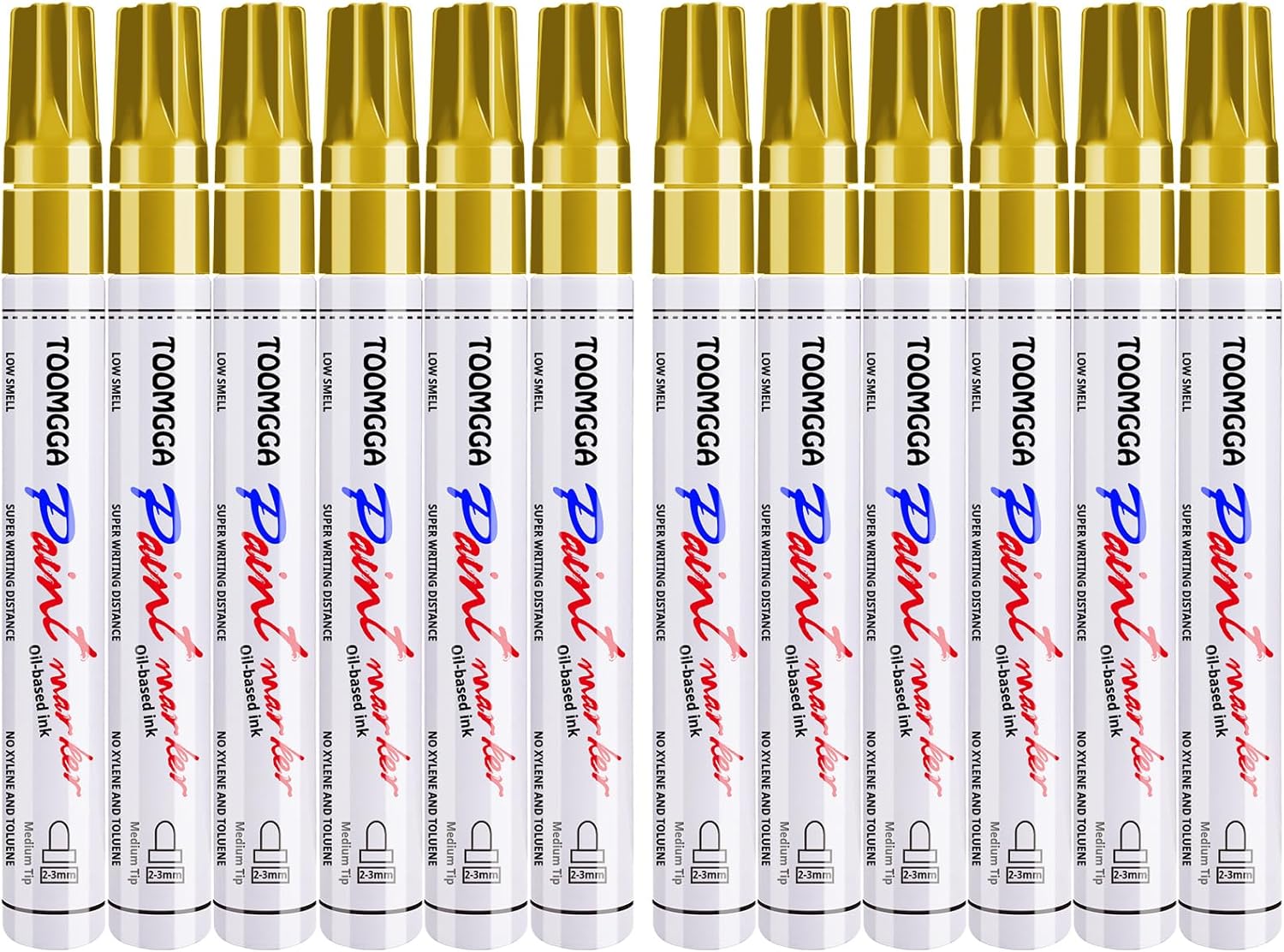 Gold Paint Pens Permanent Paint Markers 12 Pack Oil Based Markers, Quick Drying and Waterproof Marker Pen, Car Tire, Metal, Rock Painting, Wood, Ceramic, Plastic, Canvas, Mugs, Medium Tip