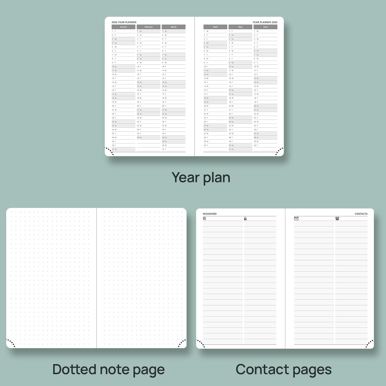 - EXTRA FUNCTION PAGES: This 2025-2026 weekly planner also contains "2025-2026 Yearly Overview" Page + "2025-2026 Holiday & Calendar" Page + Monthly Expenses Page+ Contact & Password Pages + Dotted Notes Pages for jotting down your ideas, thoughts or any other happy things in detail.