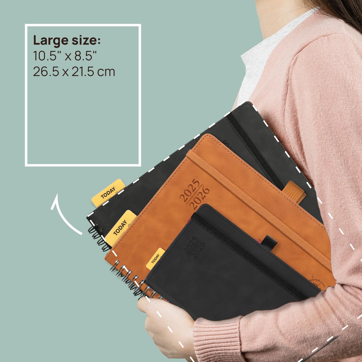 POPRUN Planner 2025-2026 Weekly Planner Notebook (Large 8.5''x 10.5'') Academic Calendar (JUL.25 - JUN.26) Appointment Book with Monthly Tabs, Spiral Soft Cover, Inner Pocket, 100 GSM - Pink