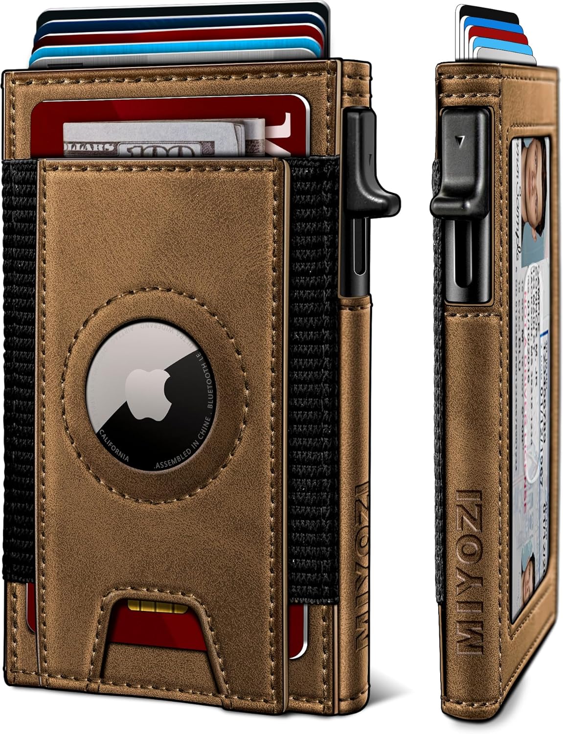 Airtag Wallet for Men, Slim Pop Up Credit Card Holder RFID Blocking Mens Minimalist wallet for 7-9 Cards ID Window, with Gift Box