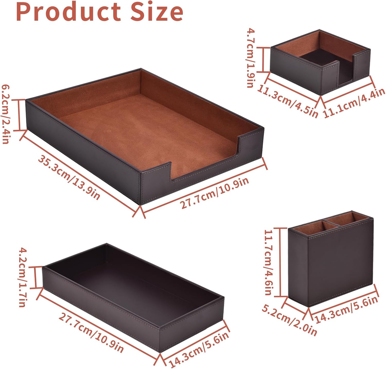 - Office Supplies Set Sturdy and Well-Made: our each desk organizers accessories internal is made of MDF material,Surface high-quality PU leather with exquisite hand stitching,Beautify any office desk,A great addition to anyone’s home office! No complicated installation process is required,Open the box to upgrade your office.