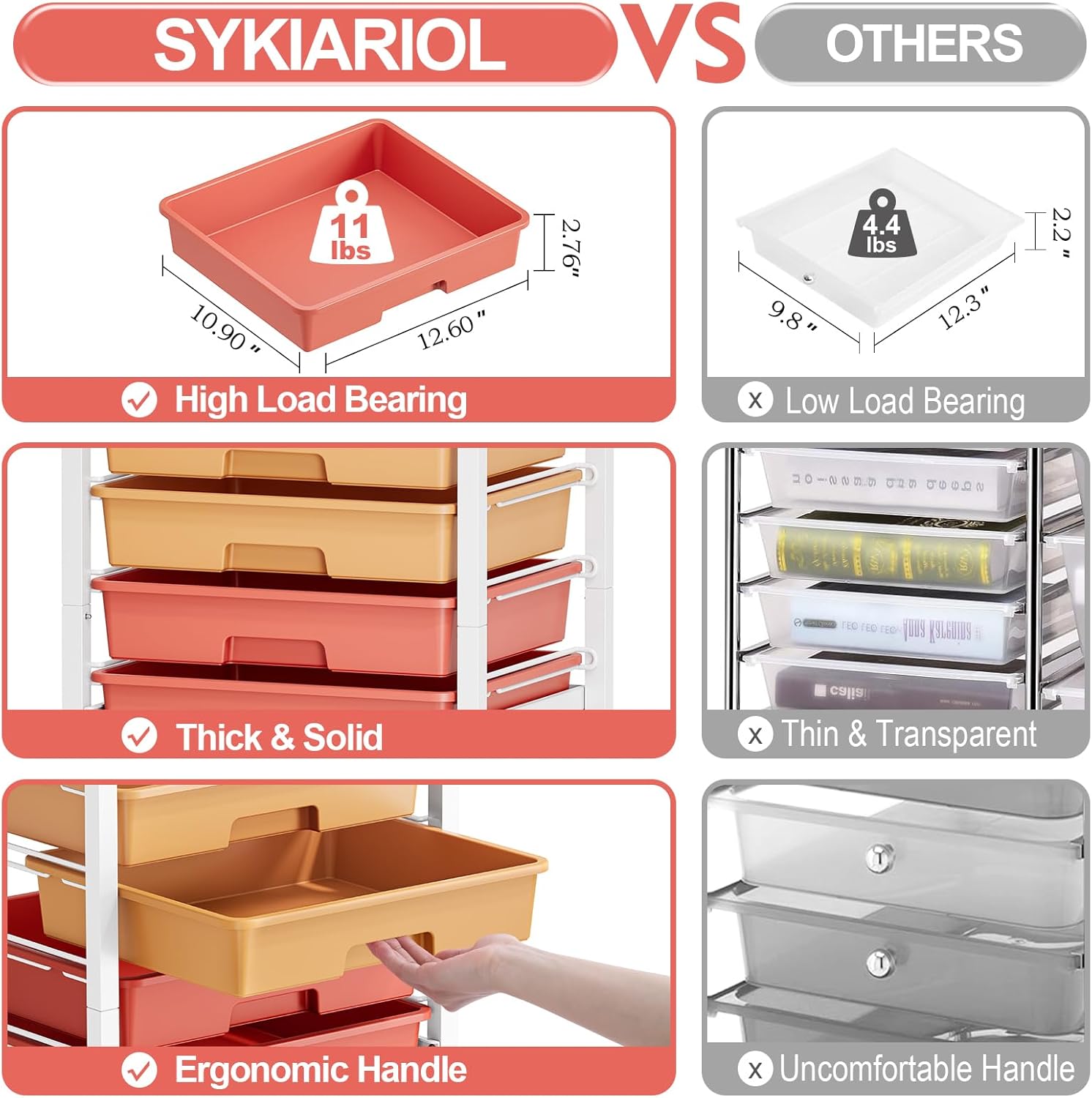 - MULTI-PURPOSE STORAGE CAPACITY: The overall Dimensions of this 10 drawer cart is 15.55"D x 12.60"W x 37.76"H. This rolling craft cart with mulity colors that store a variey of household items that are frequently used in the bedroom, office, closet, craft room, classroom or dorm.