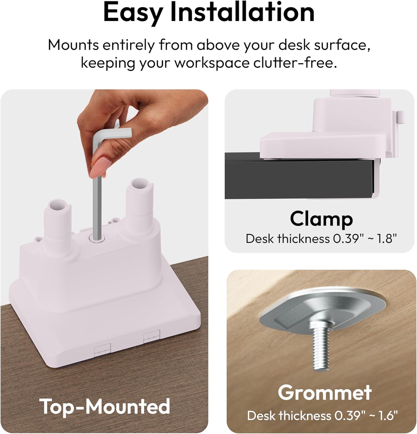 Pixio PS1D Wave Pink Dual Monitor Arm Stand Desk Mount - Fits up to 32 inches Monitors and up to 19.8lbs. VESA Compatibility and Integrated Cable Management