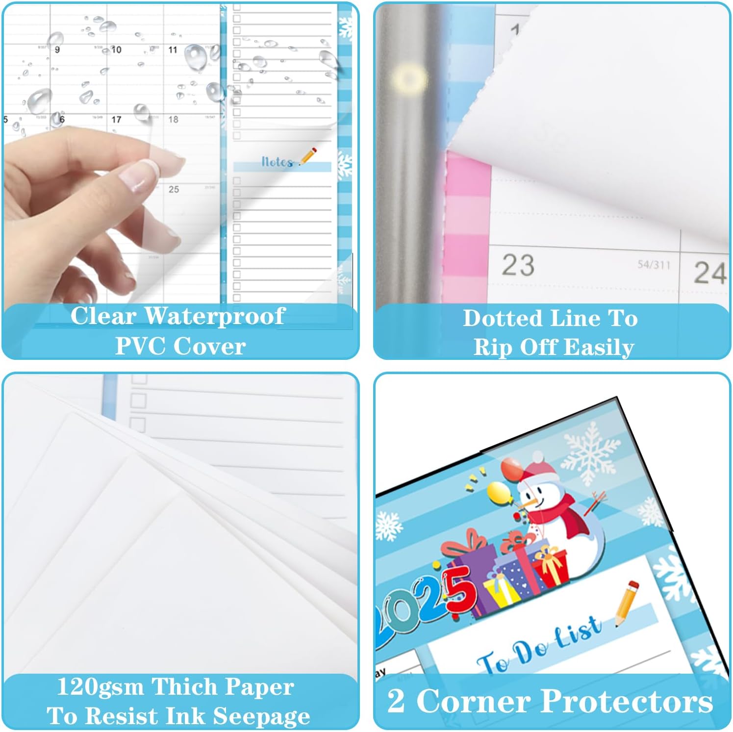 - Premium Thick Paper: This 2025 desk calendar is designed using premium thick paper, ensuring a high-quality writing experience. It is resistant to ink seepage, resulting in clean and crisp writing. To prevent the desk calendar from dust and liquids, it designed with a waterproof PVC cover. Two corner protectors are also included to keep the pages flat. Moreover, the cutting line allows to tear off used pages easily. This desk calendar is perfect to long-term use.