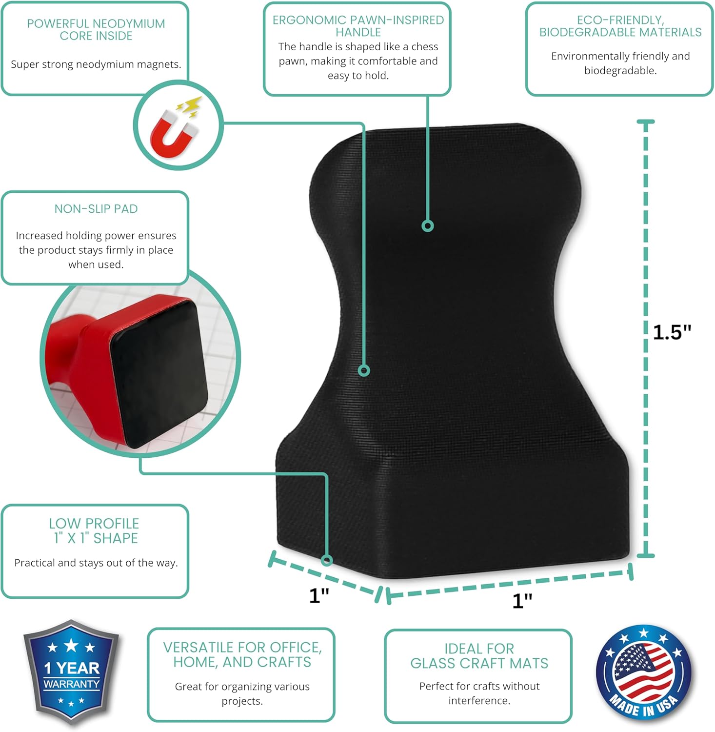 Glassboard Studio MiniPawn Magnet - Strong Neodymium Rare Earth Magnets for Fridge, Whiteboard, Locker & Magnetic Glassboards - Ideal for Crafting & Office Use - Strong Fridge Magnets (Jet Black, 2)
