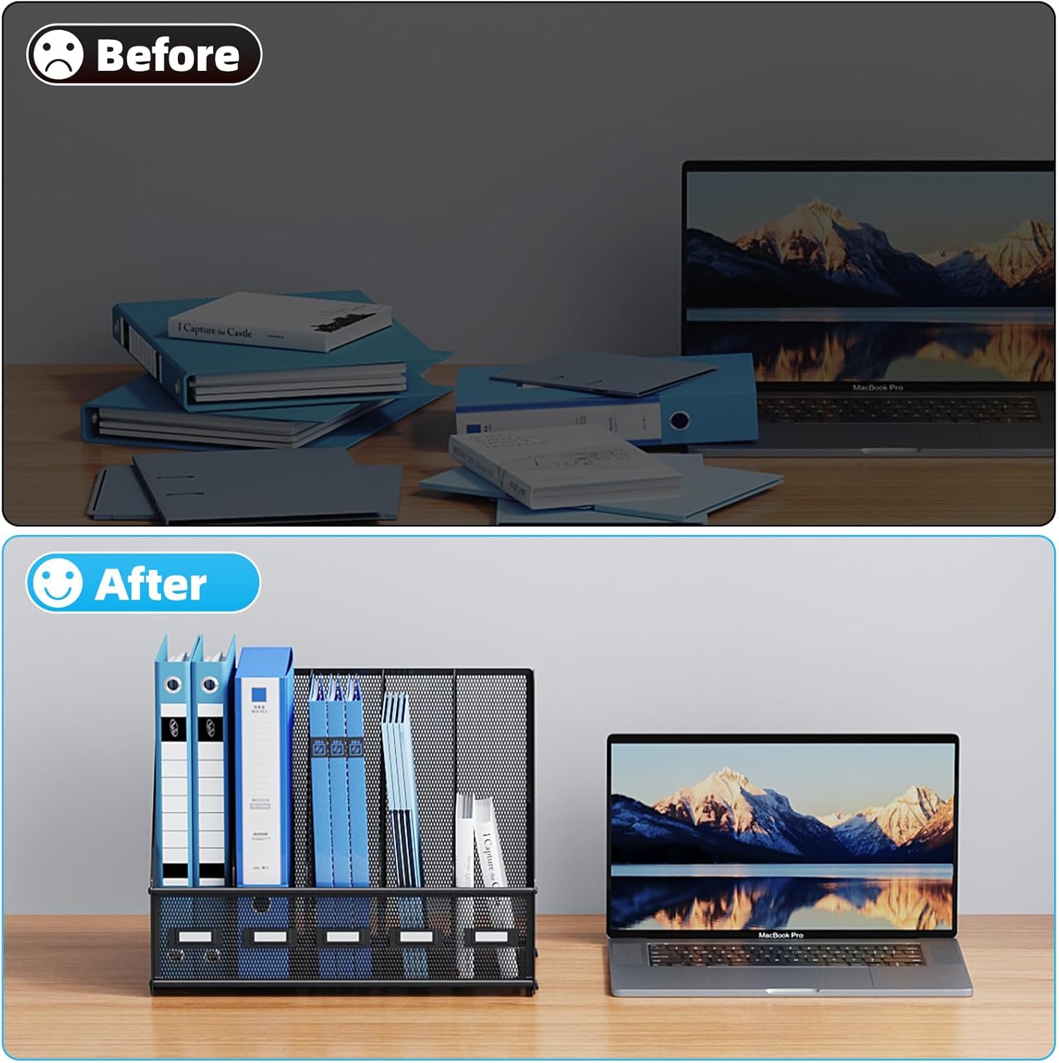 Marbrasse Desk File Organizer with 5 Vertical Compartments Mesh Magazine File Holder for Office, Home, School