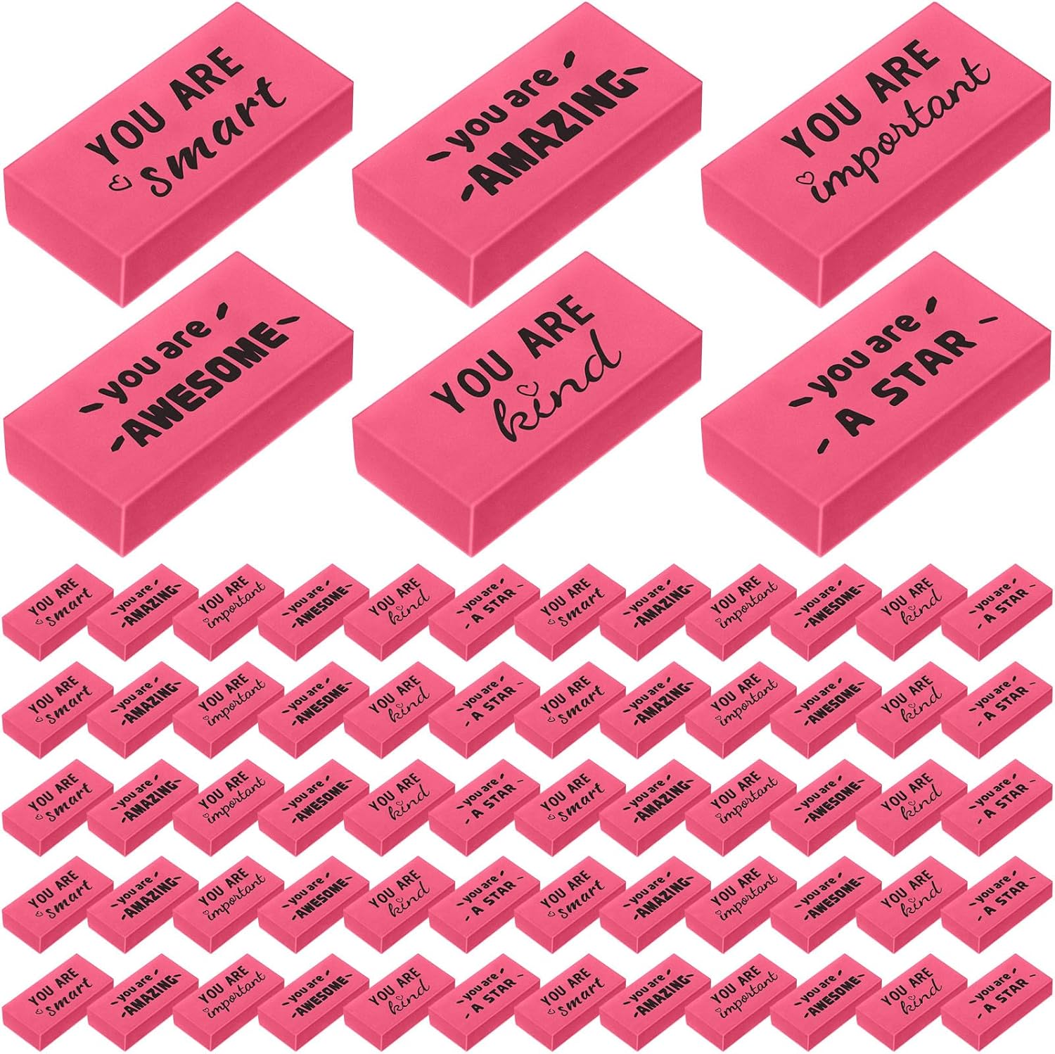 - Generous Packaging: the package includes 180 inspirational erasers bulk, ensuring that you never run out; Whether for personal use or a classroom setting, this bulk printed with 6 different motivational designs, satisfying all your erasing needs for a long time