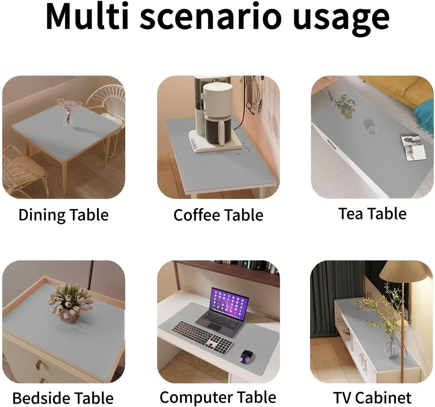 - Safe Material:The Table Cover Protector is made of faux leather(Non genuine leather)material,Non toxic odorless.The opacity of the product can effectively conceal flaws on the surface of furniture and tabletops.The product has a thickness of 1.8mm, with a soft and durable texture that can effectively cushion the collision between tableware and tabletop.it shields furniture from scratches, scuffs, stains, spills, and damage.