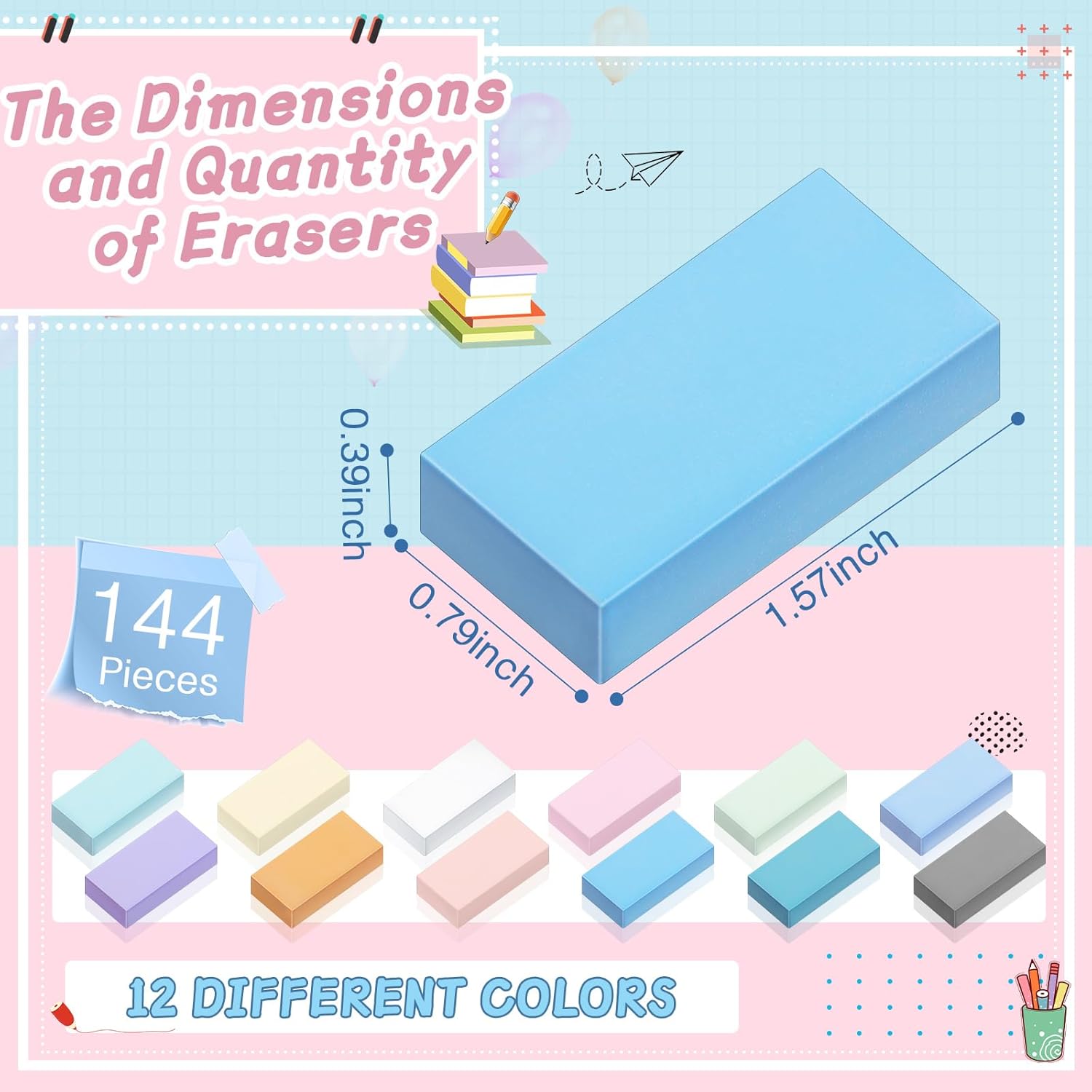 - Convenient and Portable: these back to school colorful erasers bulk come in a suitable size and are lightweight, making them easy to carry around; Whether you're in the classroom, at home, or in office, these bulk kids erasers for school won't take up much space and are ideal for everyday use