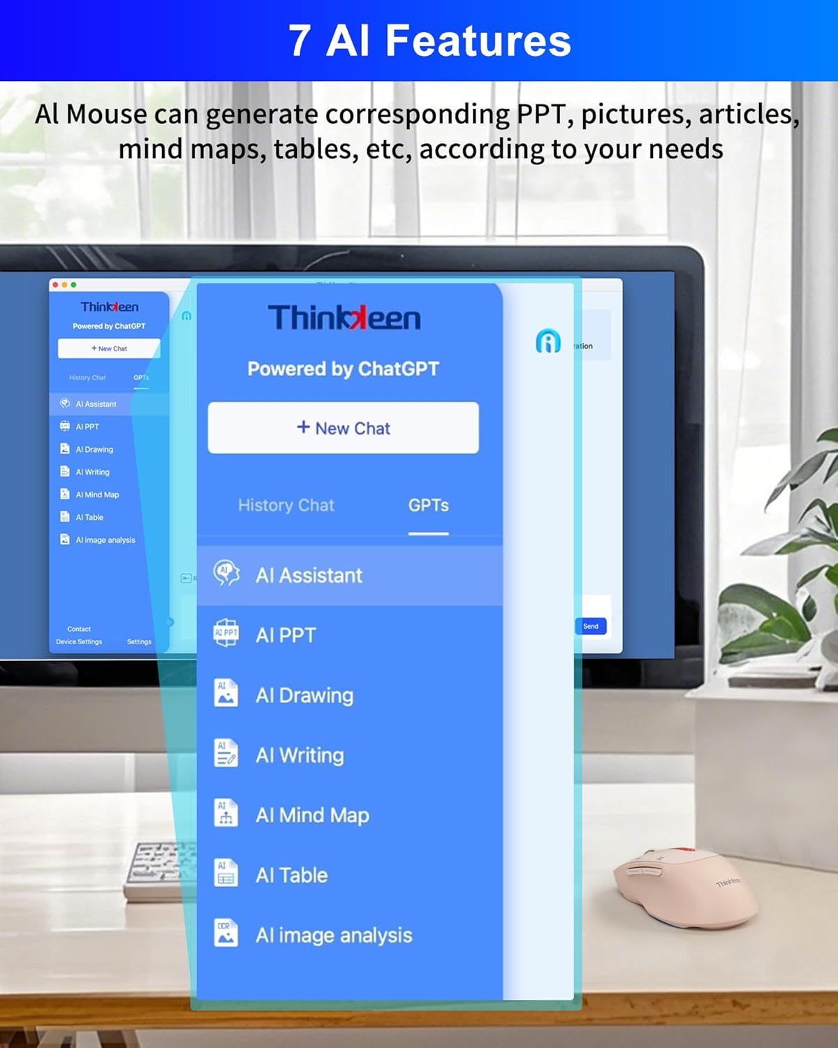 - 【AI GPT Mouse】The THINKKEEN AI mouse is an intelligent voice mouse that, in addition to its basic functions, can also achieve functions such as voice typing, voice search, voice control, voice translation, screenshot recognition and translation word recognition and translation, button customization, Al intelligent writing AI PPT, Al Drawing, Al Mind Map, Al Table etc.(Language translation in 152 languages)