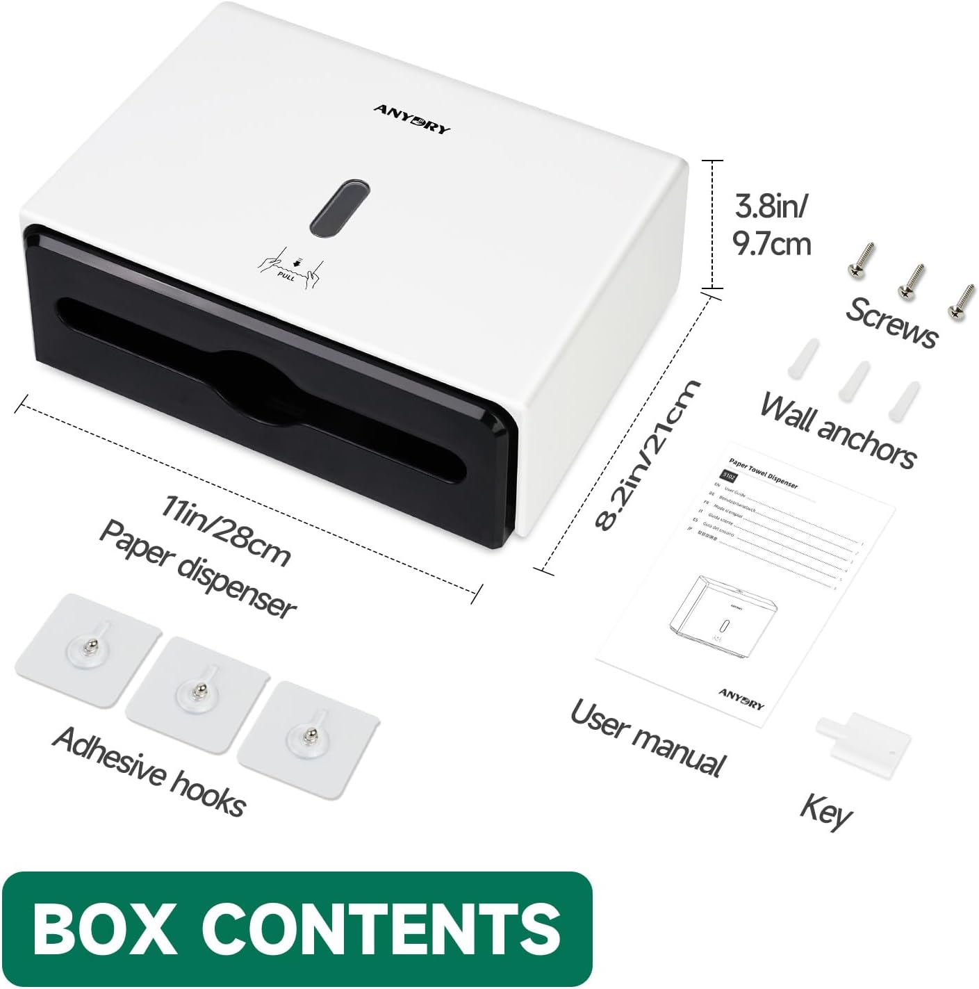 Wall-Mounted Paper Towel Dispenser – Fits Tri-Fold Towels up to 10x3.1 Inches, Holds 200 Sheets, Ideal for Home & Commercial Use (White)