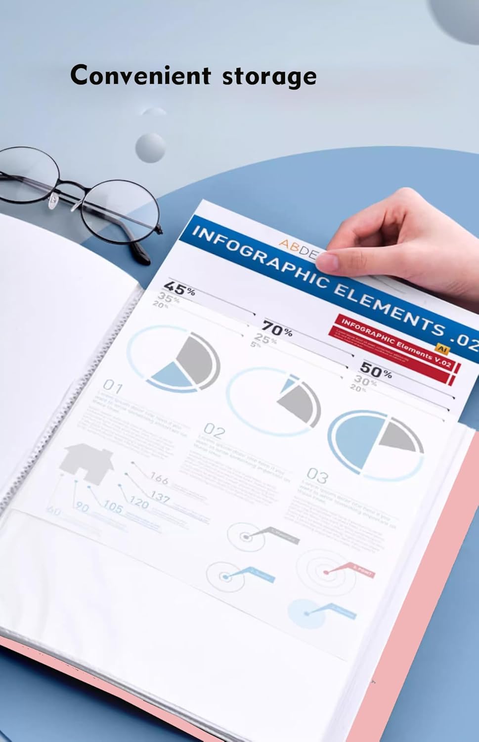 - 100 Secure Pockets for Maximum Organization — Holds A4-sized documents neatly; each pocket is extra-thick to prevent tears and spills, keeping your papers safe and organized.