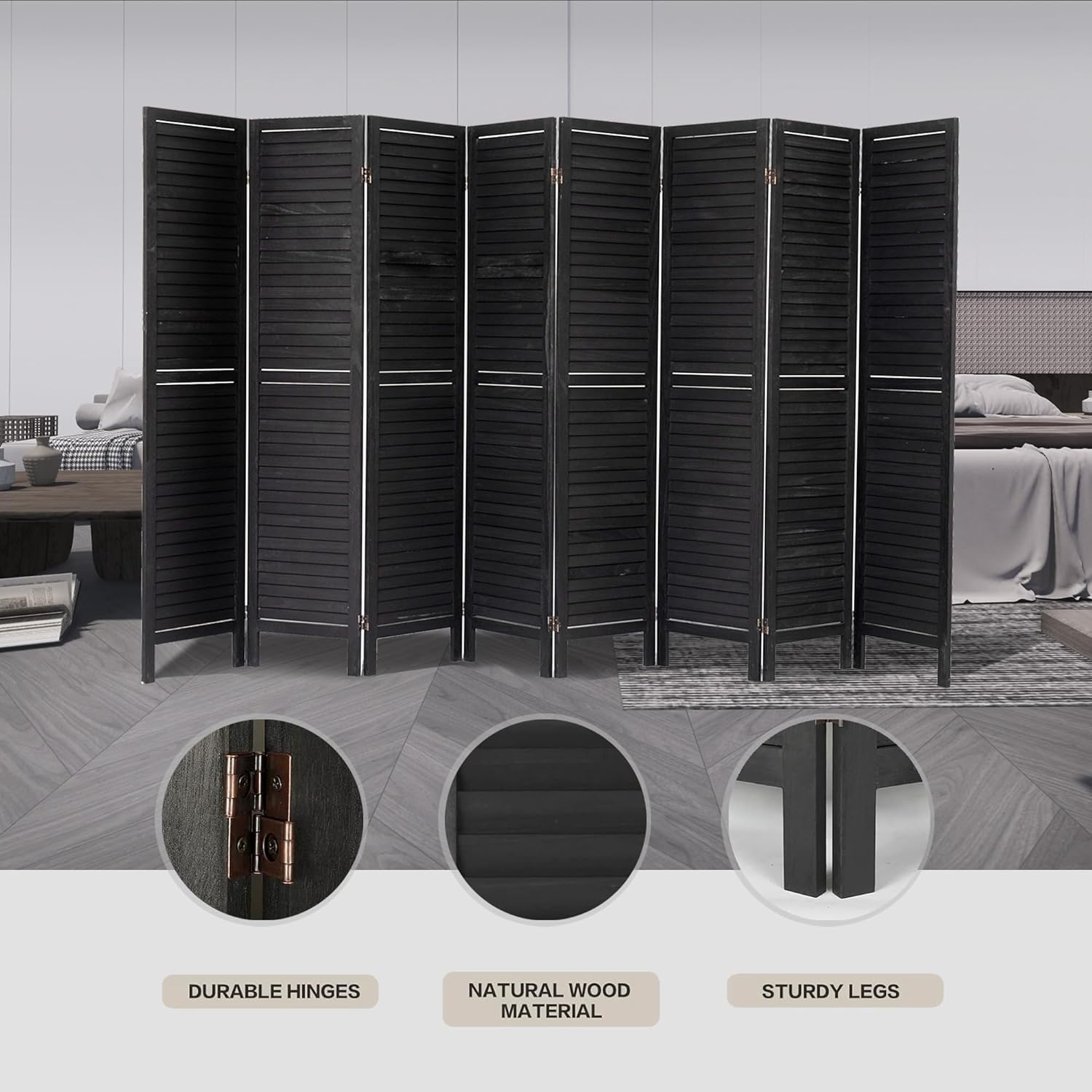 NicBex 8 Panel Room Divider,5.6FT Wood Room Dividers,Folding Privacy Screens Portable Freestanding Partition Wall Dividers for Room Separation,Home Bedroom Office,Black
