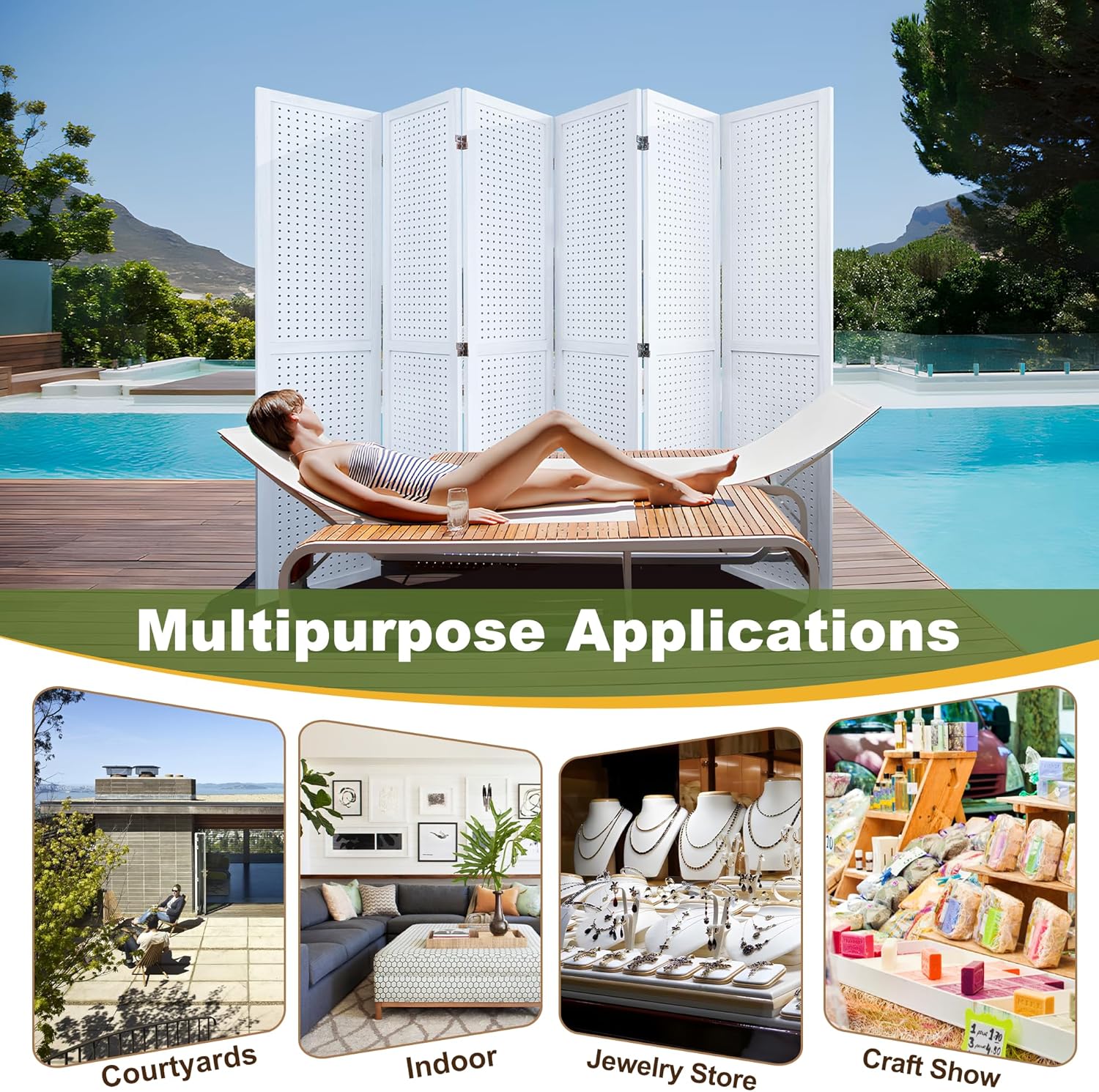 - Versatile Pegboard Panel Design:Our pegboard panel features 0.3-inch diameter holes spaced 1 inch apart, compatible with various peg hooks. This room divider doubles as a decorative folding privacy screen or wall organizer, and serves as a freestanding display panel for trade shows, craft fairs, department stores, and more.