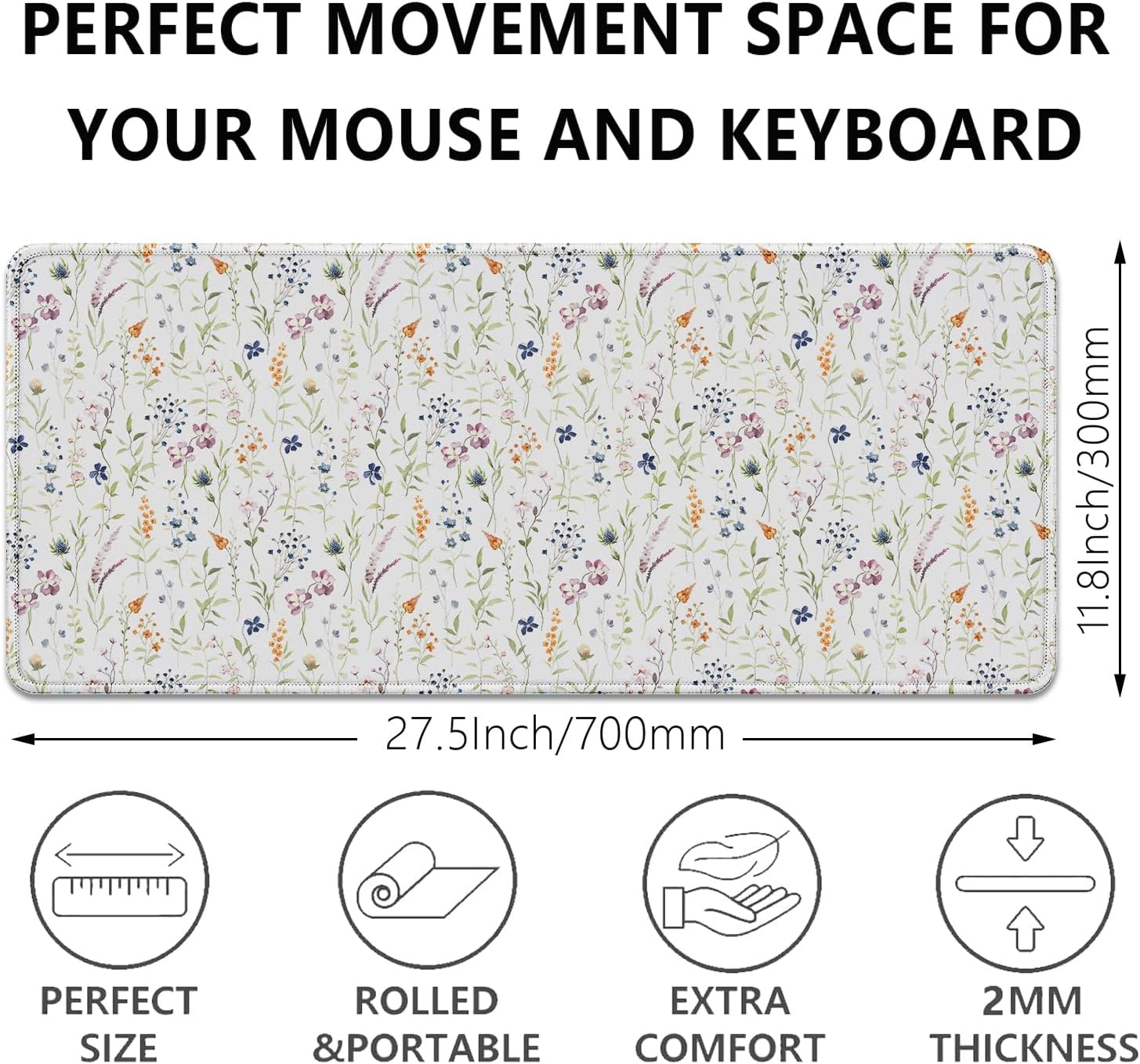 - Extended Large Mouse Pad Size: Large desk pad mat's measure: 27.5 x 11.8 x 0.1 inches. The keyboard and mouse pad is large enough to have a mouse, gaming keyboard, and other desk items Just immerse into your work or games