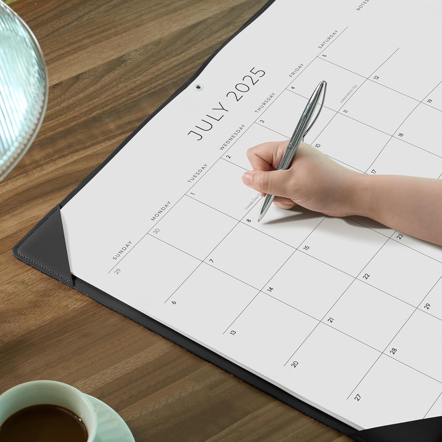 Cabbrix Simplified Desk Calendar 2025-2026 with Desktop Mat, Desk Pad Calendar Large 21" x 16-1/2" Covering July 2025 to June 2026, Monthly Desktop Calendar for Home School and Office (Black)