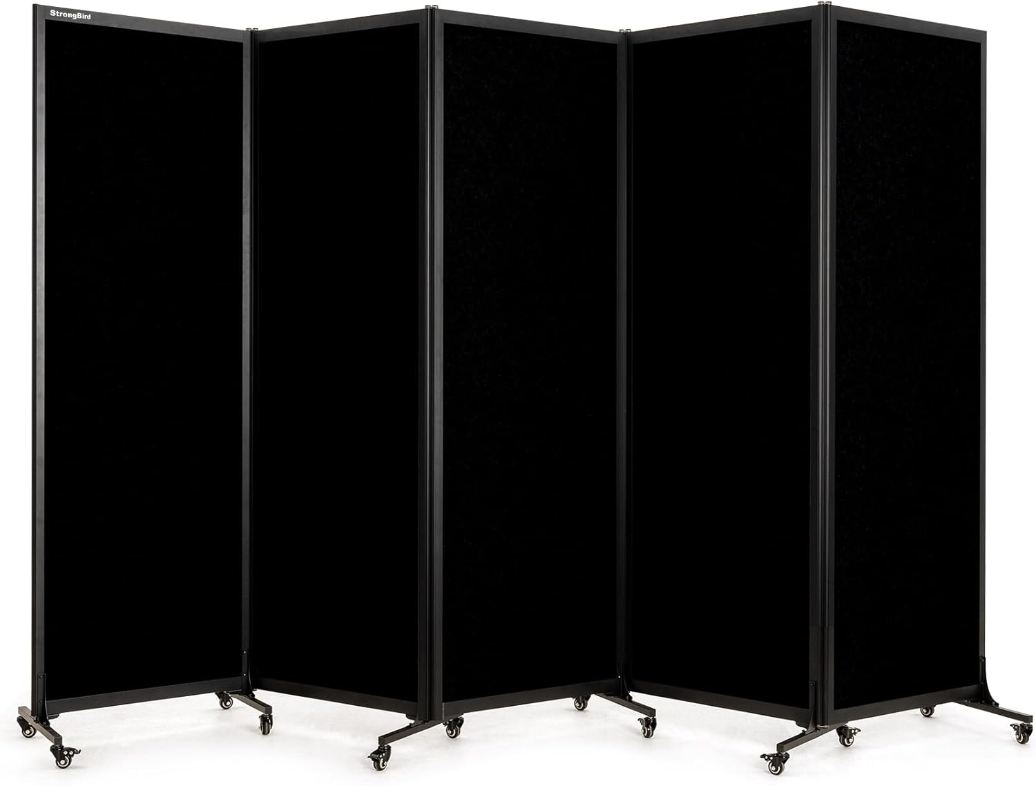 Upgrade Version Room Partition and Divider, Freestanding Rolling Dividers with Wheels,Office Privacy Screen Divider Wall,Classroom Felt Dividers,10'6"L* 6'7"H,5 Panel,Black
