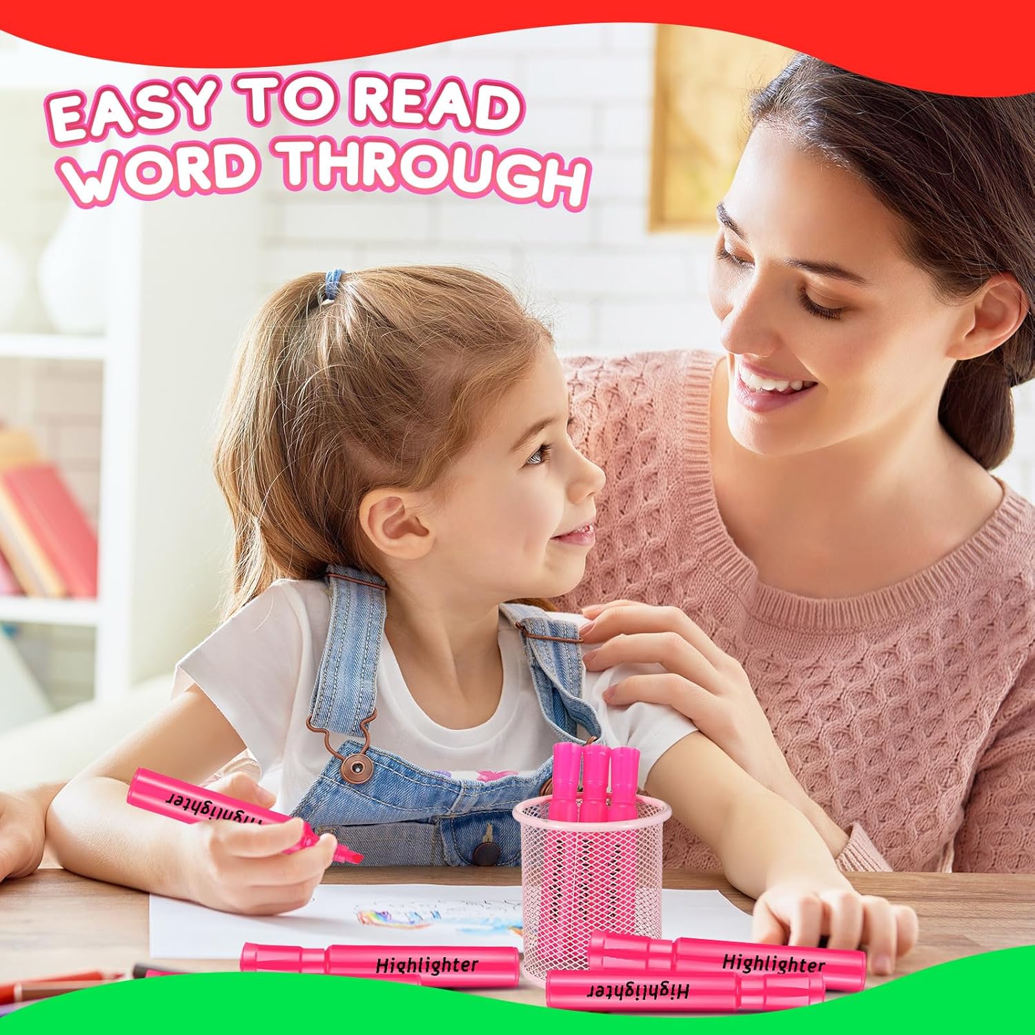 Qilery 24 Pack Tank Style Highlighters Chisel Tip Highlighters Bulk Colored Markers for Adult Coloring, Home Office Supplie(Pink)